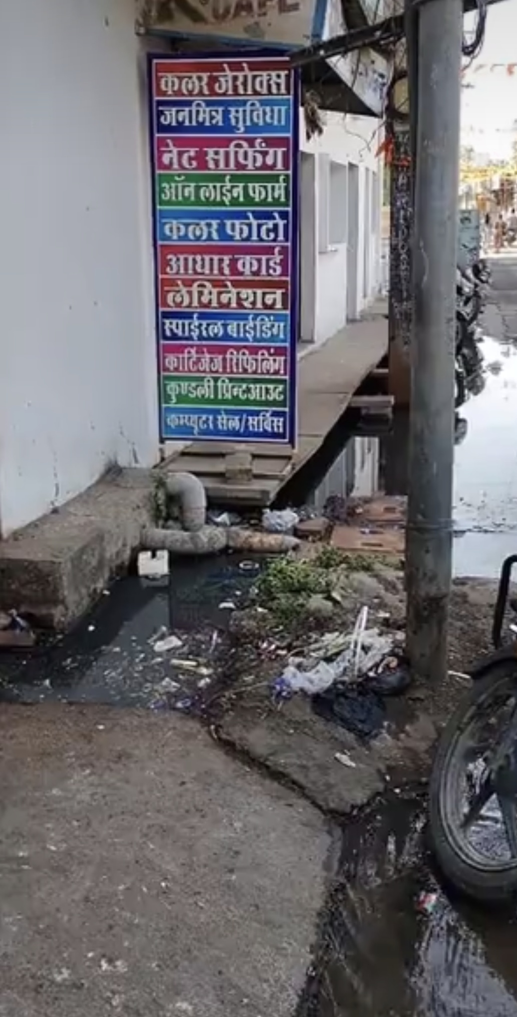पंकज वर्मा के घर के बाहर की नाली का पानी सड़क पर इस कदर फैल गया है कि लोगों को घर से बाहर निकलने में भी दिक्कत हो रही है। इसी स्थान पर एक ई-मित्र केंद्र होने के कारण परेशानी और बढ़ गई है।