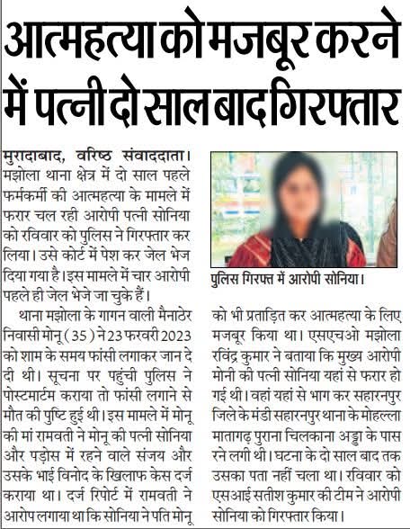 मुरादाबाद। आत्महत्या करने के लिये उकसाने की अभियुक्ता को थाना मझोला पुलिस ने किया गिरफ्तार । #MoradabadPolice #UPPInNews #UPPolice