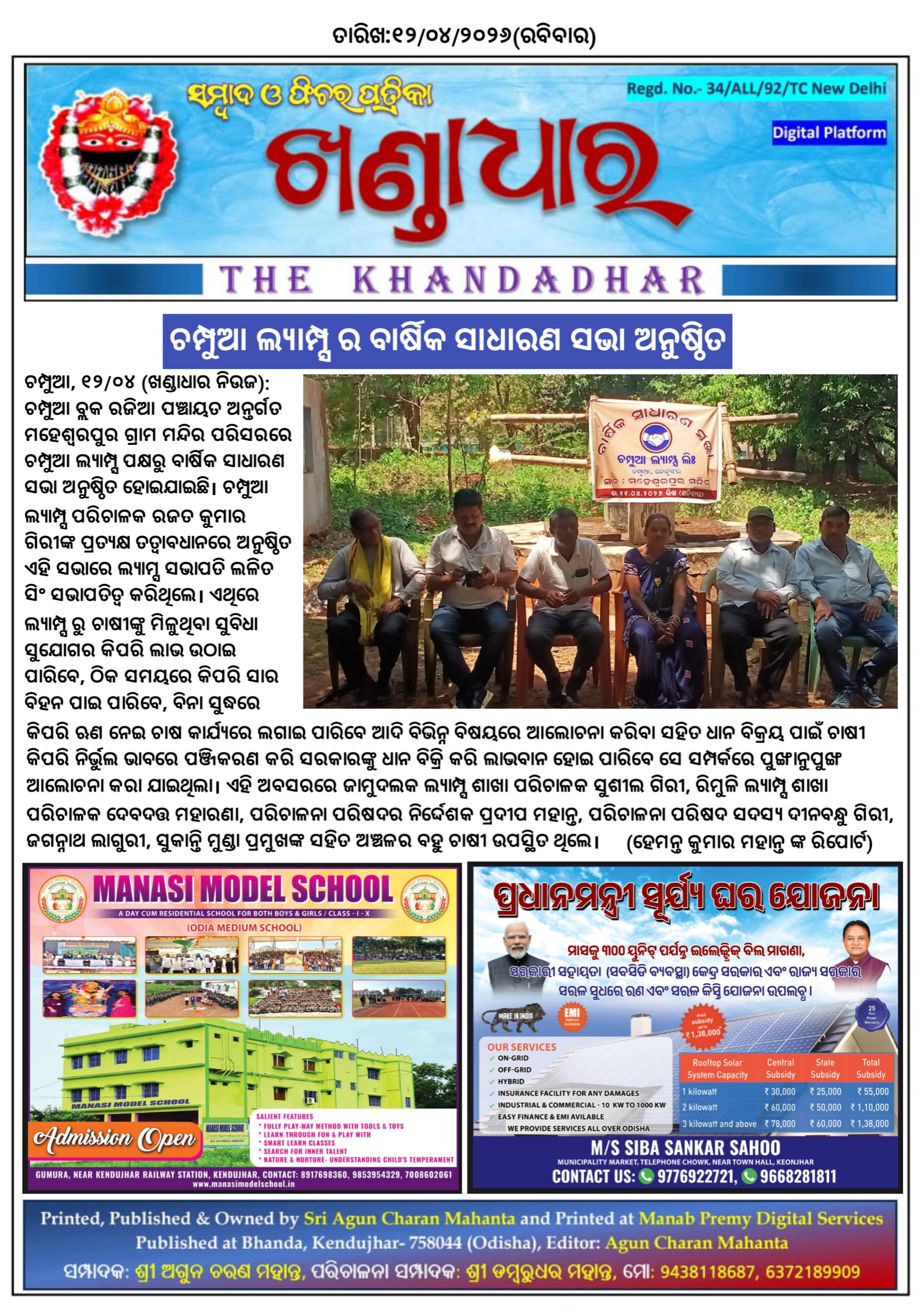 ଚମ୍ପୁଆ ଲ୍ୟାମ୍ପ୍ସ ର ବାର୍ଷିକ ସାଧାରଣ ସଭା ଅନୁଷ୍ଠିତ।