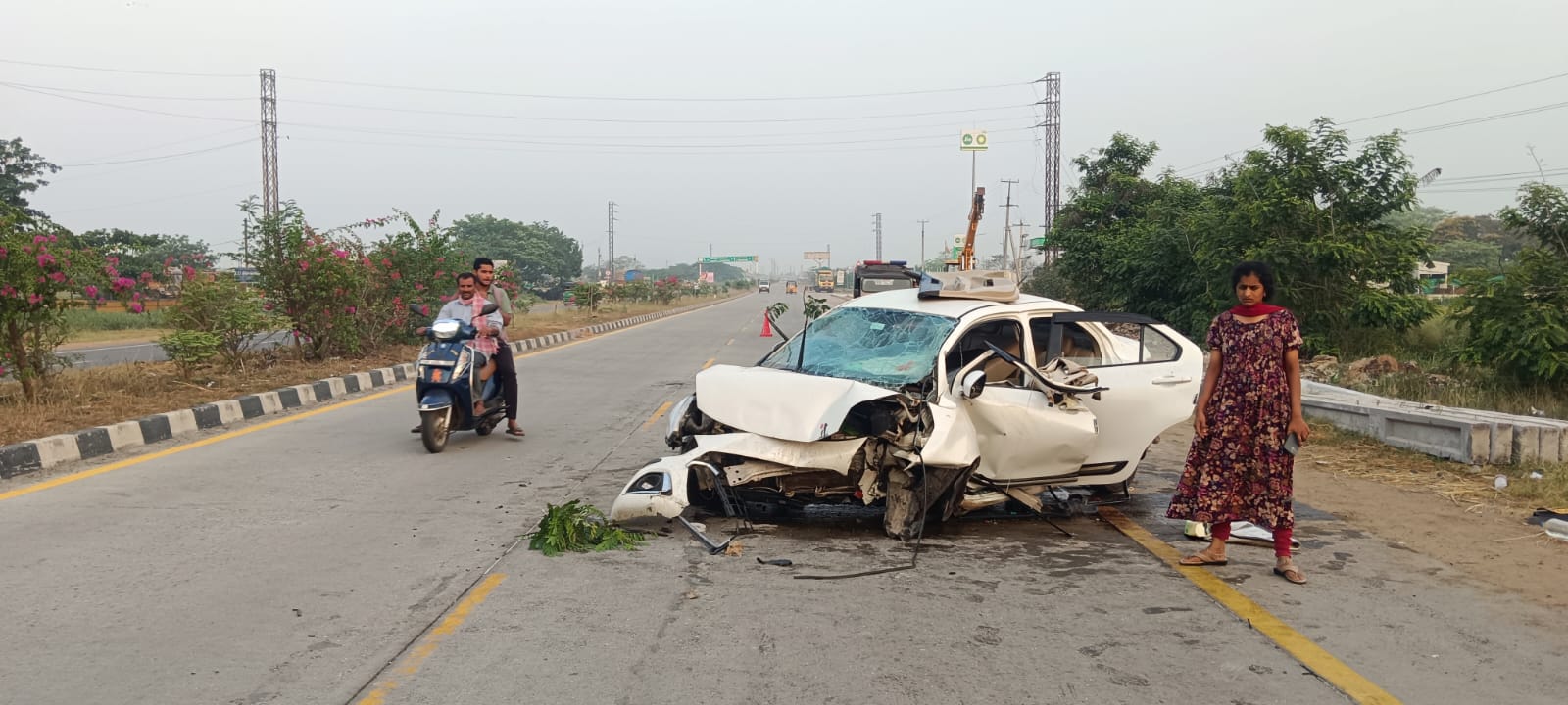 ఉయ్యూరు మచిలీపట్నం నేషనల్ హైవే పై జియో పెట్రోల్ బంక్ సమీపంలో కారు ప్రమాదం..