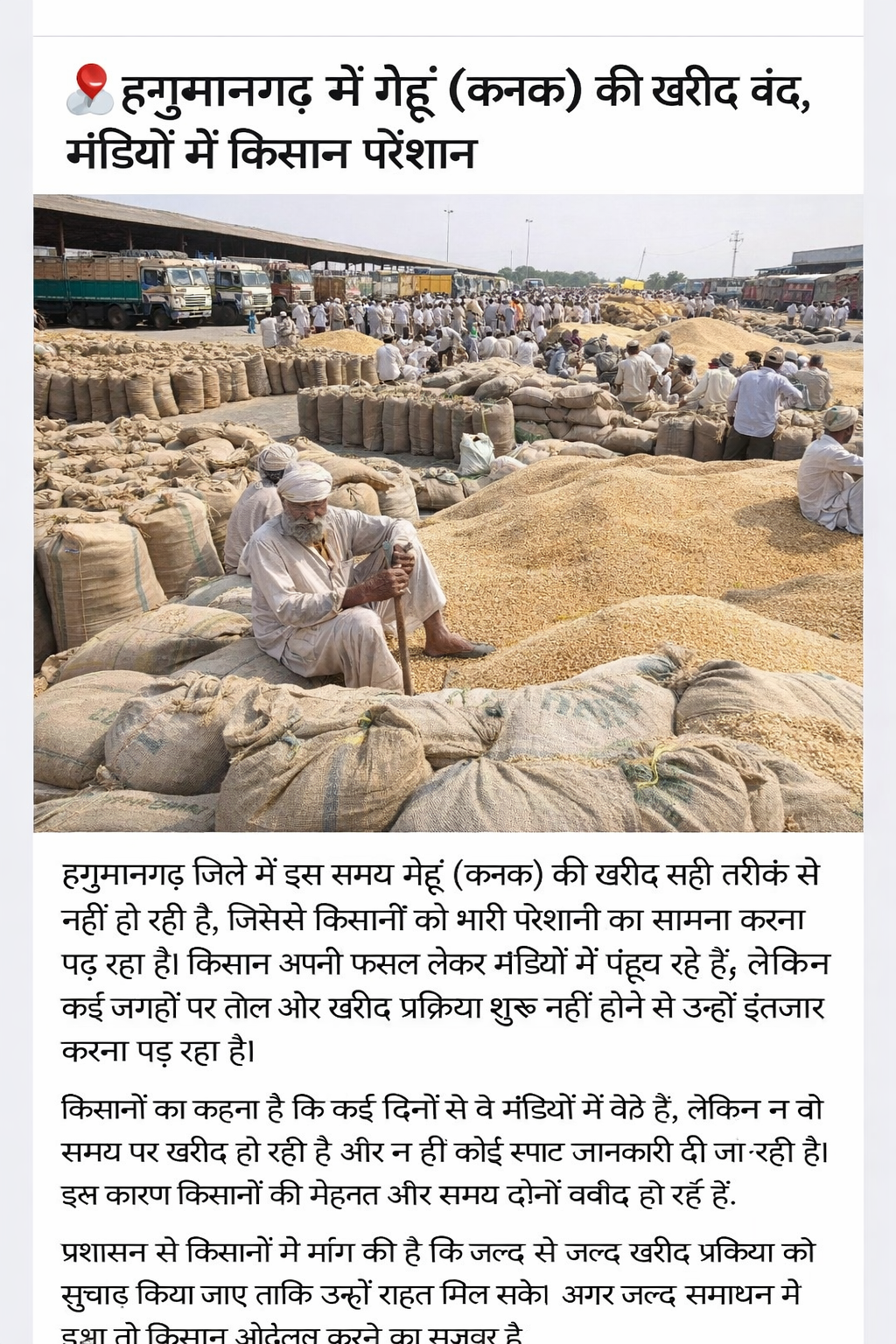 हनुमानगढ़ में गेहूं (कनक) की खरीद बंद, मंडियों में किसान परेशान