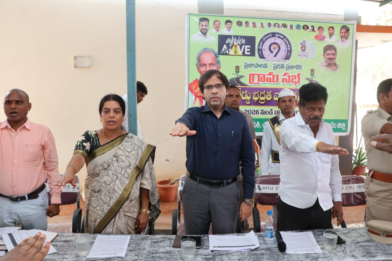 చుంచుపల్లి ప్రజాపాలన ప్రగతి ప్రణాళిక 99 రోజుల కార్యాచరణలో భాగంగా నిర్వహిస్తున్న రోడ్డు భద్రత వారోత్సవాల సందర్భంగా జిల్లా వ్యాప్తంగా రోడ్డు భద్రతపై అవగాహన కార్యక్రమాలు చేపడుతున్నట్లు జిల్లా కలెక్టర్ అంకిత్ తెలిపారు. ఈ కార్యక్రమాలలో భాగంగా సోమవారం చుంచుపల్లి మండలం విద్యానగర్ గ్రామపంచాయతీ కార్యాలయంలో నిర్వహించిన గ్రామసభకు కలెక్టర్ ముఖ్య అతిథిగా హాజరై ప్రసంగించారు.ఈ సందర్భంగా కలెక్టర్ మాట్లాడుతూ, మార్చి 6 నుండి ప్రారంభమైన ప్రజాపాలన ప్రగతి ప్రణాళిక 99 రోజుల కార్యక్రమంలో ప్రతి వారం వివిధ అంశాలపై ప్రత్యేక కార్యక్రమాలు నిర్వహిస్తున్నామని తెలిపారు. ఇందులో భాగంగా పారిశుద్ధ్య కార్యక్రమాలు, హెల్త్ క్యాంపులు నిర్వహించడంతో పాటు డీ-అడిక్షన్ కౌన్సిలింగ్ సేవలను కూడా అందుబాటులోకి తీసుకువచ్చామని చెప్పారు.జిల్లా వ్యాప్తంగా అన్ని గ్రామపంచాయతీలలో గ్రామసభలు నిర్వహిస్తూ ప్రజలను ప్రత్యక్షంగా భాగస్వాములుగా చేసుకుంటూ అవగాహన కల్పిస్తున్నామని అన్నారు . రోడ్డు ప్రమాదాల వల్ల ప్రతి రోజు అనేక మంది ప్రాణాలు కోల్పోతున్నారని ఆందోళన వ్యక్తం చేస్తూ, రోడ్డు ప్రమాదాలు రోజురోజుకు పెరుగుతున్న నేపథ్యంలో ప్రతి ఒక్కరిలో బాధ్యతాయుతమైన ప్రవర్తన అవసరమని అన్నారు . ఈ గ్రామసభల ద్వారా ప్రజల్లో చైతన్యం తీసుకువచ్చి ప్రమాదాలను తగ్గించడం ప్రధాన లక్ష్యమని స్పష్టం చేశారు.ప్రమాదాలకు కారణమయ్యే బ్లాక్ స్పాట్లను గుర్తించడం, రహదారుల వెంట ఉన్న పిచ్చి మొక్కలను తొలగించడం, ప్రమాదాలు ఎక్కువగా జరిగే ప్రాంతాల్లో తగిన జాగ్రత్తలు తీసుకోవడం వంటి చర్యలు చేపడుతున్నామని చెప్పారు. అలాగే ప్రమాదాల సమయంలో అంబులెన్స్ సేవలు సమయానికి అందుబాటులో ఉన్నాయా, సమీప ఆసుపత్రులకు కనెక్టివిటీ ఎలా ఉందనే అంశాలను కూడా ఈ గ్రామసభల ద్వారా సమీక్షిస్తున్నామని వివరించారు.