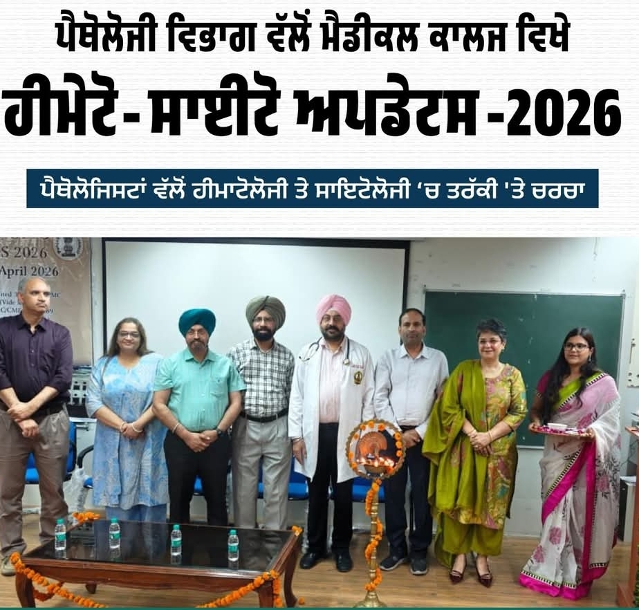 ਪਟਿਆਲਾ, 12 ਅਪ੍ਰੈਲ: ਸਰਕਾਰੀ ਮੈਡੀਕਲ ਕਾਲਜ, ਪਟਿਆਲਾ ਦੇ ਪੈਥੋਲੋਜੀ ਵਿਭਾਗ ਨੇ ਪੰਜਾਬ ਮੈਡੀਕਲ ਕੌਂਸਲ ਦੀ ਅਗਵਾਈ ਹੇਠ "ਹੀਮੇਟੋ-ਸਾਈਟੋ ਅਪਡੇਟਸ 2026" ਵਿਸ਼ੇ ‘ਤੇ ਇੱਕ ਦਿਨਾਂ ਨਿਰੰਤਰ ਮੈਡੀਕਲ ਸਿੱਖਿਆ (ਸੀਐਮਈ) ਪ੍ਰੋਗਰਾਮ ਕਰਵਾਇਆ। ਇਸ ਦੌਰਾਨ ਪੈਥੋਲੋਜਿਸਟਾਂ ਵੱਲੋਂ ਹੀਮਾਟੋਲੋਜੀ ਅਤੇ ਸਾਇਟੋਲੋਜੀ ਵਿੱਚ ਤਰੱਕੀ 'ਤੇ ਕੇਂਦ੍ਰਿਤ ਅਕਾਦਮਿਕ ਚਰਚਾ ਕੀਤੀ ਗਈ। ਇਸ ਬਾਰੇ ਜਾਣਕਾਰੀ ਦਿੰਦਿਆਂ ਪ੍ਰੋਫੈਸਰ ਅਤੇ ਮੁਖੀ ਪੈਥੋਲੋਜੀ ਤੇ ਸੀਐਮਈ ਦੇ ਪ੍ਰਬੰਧਕੀ ਚੇਅਰਮੈਨ, ਡਾ. ਹਰਪਾਲ ਸਿੰਘ ਨੇ ਦੱਸਿਆ ਕਿ ਇਸ ਪ੍ਰੋਗਰਾਮ ਵਿੱਚ ਪੰਜਾਬ ਸਮੇਤ ਨਾਲ ਲੱਗਦੇ ਖੇਤਰਾਂ ਦੇ ਪੋਸਟ ਗ੍ਰੈਜੂਏਟ ਵਿਦਿਆਰਥੀਆਂ, ਫੈਕਲਟੀ ਮੈਂਬਰਾਂ ਅਤੇ ਹੋਰ ਪੈਥੋਲੋਜਿਸਟਾਂ ਨੇ ਹਿੱਸਾ ਲਿਆ। ਉਨ੍ਹਾਂ ਦੱਸਿਆ ਕਿ ਇਸ ਨਿਰੰਤਰ ਮੈਡੀਕਲ ਸਿੱਖਿਆ (ਸੀਐਮਈ) ਪ੍ਰੋਗਰਾਮ ਦੇ ਤਹਿਤ ਹਿੱਸਾ ਲੈਣ ਵਾਲਿਆਂ ਨੂੰ ਪੰਜਾਬ ਮੈਡੀਕਲ ਕੌਂਸਲ ਵੱਲੋਂ ਤਿੰਨ ਕ੍ਰੈਡਿਟ ਘੰਟਿਆਂ ਨਾਲ ਮਾਨਤਾ ਦਿੱਤੀ ਗਈ ਸੀ। ਡਾ ਹਰਪਾਲ ਸਿੰਘ ਨੇ ਦੱਸਿਆ ਕਿ ਮੈਡੀਕਲ ਸਿੱਖਿਆ ਅਤੇ ਖੋਜ ਵਿਭਾਗ ਦੇ ਡਾਇਰੈਕਟਰ ਡਾ. ਅਵਨੀਸ਼ ਕੁਮਾਰ, ਜੁਆਇੰਟ ਡੀਆਰਐਮਈ ਡਾ. ਰੁਪਿੰਦਰ ਬਖਸ਼ੀ, ਮੈਡੀਕਲ ਕਾਲਜ ਦੇ ਡਾਇਰੈਕਟਰ ਪ੍ਰਿੰਸੀਪਲ ਡਾ. ਆਰ.ਪੀ.ਐਸ. ਸਿਬੀਆ ਅਤੇ ਰਾਜਿੰਦਰਾ ਹਸਪਤਾਲ ਦੇ ਮੈਡੀਕਲ ਸੁਪਰਡੈਂਟ ਡਾ. ਵਿਸ਼ਾਲ ਚੋਪੜਾ ਦੀ ਸਰਪ੍ਰਸਤੀ ਹੇਠ ਸੰਪੰਨ ਹੋਈ ਇਸ ਸੀਐਮਈ ਮੌਕੇ ਡਾ. ਵਿਜੇ ਬੋਦਲ ਪੀ.ਐਮ.ਸੀ. ਦੇ ਆਬਜ਼ਰਵਰ ਵਜੋਂ ਮੌਜੂਦ ਸਨ। ਸੀ.ਐਮ.ਈ. ਦੌਰਾਨ ਪੈਥੋਲੋਜੀ ਵਿਭਾਗ ਦੀ ਪੂਰੀ ਫੈਕਲਟੀ ਮੌਜੂਦ ਰਹੀ ਅਤੇ ਇਸ ਦੌਰਾਨ ਪੈਥਾਲੋਜੀ ਦੇ ਖੇਤਰ ਵਿੱਚ ਨਵੀਆਂ ਖੋਜਾਂ ਉਤੇ ਚਰਚਾ ਕੀਤੀ ਗਈ। ਵਿਗਿਆਨਕ ਸੈਸ਼ਨਾਂ ਵਿੱਚ ਪ੍ਰਸਿੱਧ ਸੰਸਥਾਵਾਂ ਦੇ ਉੱਘੇ ਪ੍ਰੋਫੈਸਰ ਡਾ. ਤੇਜਿੰਦਰ ਸਿੰਘ, ਡਾ. ਰਜਨੀ ਯਾਦਵ, ਡਾ. ਜਯੋਤਿੰਦਰ ਪੂਨੀਆ ਅਤੇ ਡਾ. ਨਵੀਨ ਕੱਕੜ ਦੀ ਮੁਹਾਰਤ ਦੇ ਖੇਤਰਾਂ ਬਾਰੇ ਭਾਸ਼ਣ ਕਰਵਾਏ ਗਏ ਸਨ। ਇਸ ਦੌਰਾਨ ਪੰਜਾਬ, ਹਰਿਆਣਾ ਅਤੇ ਚੰਡੀਗੜ੍ਹ ਤੋਂ ਲਗਭਗ 250 ਪੈਥਾਲੋਜੀ ਮਾਹਿਰਾਂ ਨੇ ਅਕਾਦਮਿਕ ਪ੍ਰੋਗਰਾਮ ‘ਚ ਹਿੱਸਾ ਲਿਆ। ਪੋਸਟਰ ਪੇਸ਼ਕਾਰੀ ਮੁਕਾਬਲੇ ‘ਚ ਪੋਸਟ ਗ੍ਰੈਜੂਏਟ ਵਿਦਿਆਰਥੀਆਂ ਨੇ ਉਤਸ਼ਾਹ ਨਾਲ ਹਿੱਸਾ ਲਿਆ। ਡਾ. ਨਵਨੀਤ ਕੌਰ ਅਤੇ ਡਾ. ਮੋਹਨਵੀਰ ਕੌਰ ਨੇ ਧੰਨਵਾਦ ਕੀਤਾ।