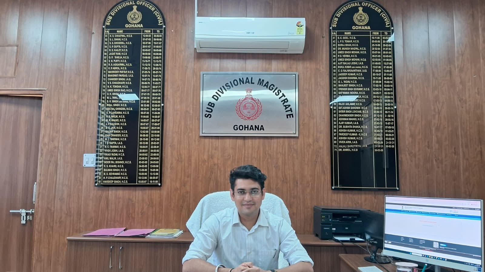 Gohana: 2023 बैच के एचसीएस अधिकारी अंकित कुमार ने संभाला गोहाना एसडीएम का पदभार
