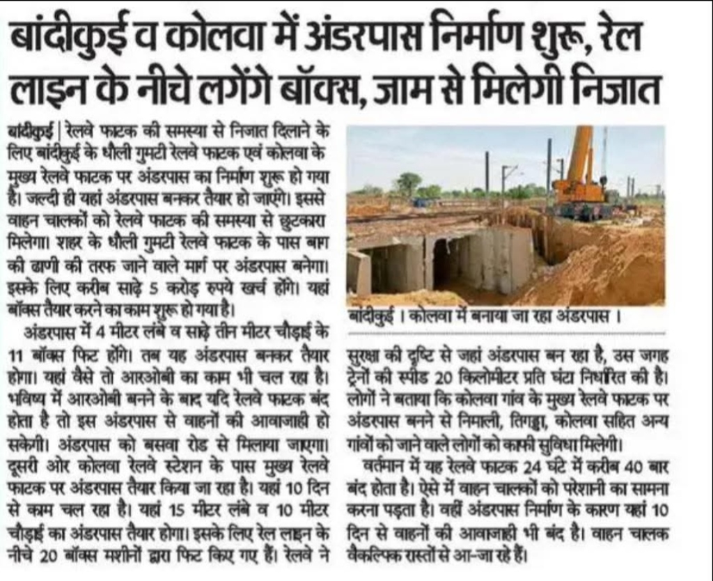 बांदीकुई के कोलवा में अंडरपास का निर्माण शुरू