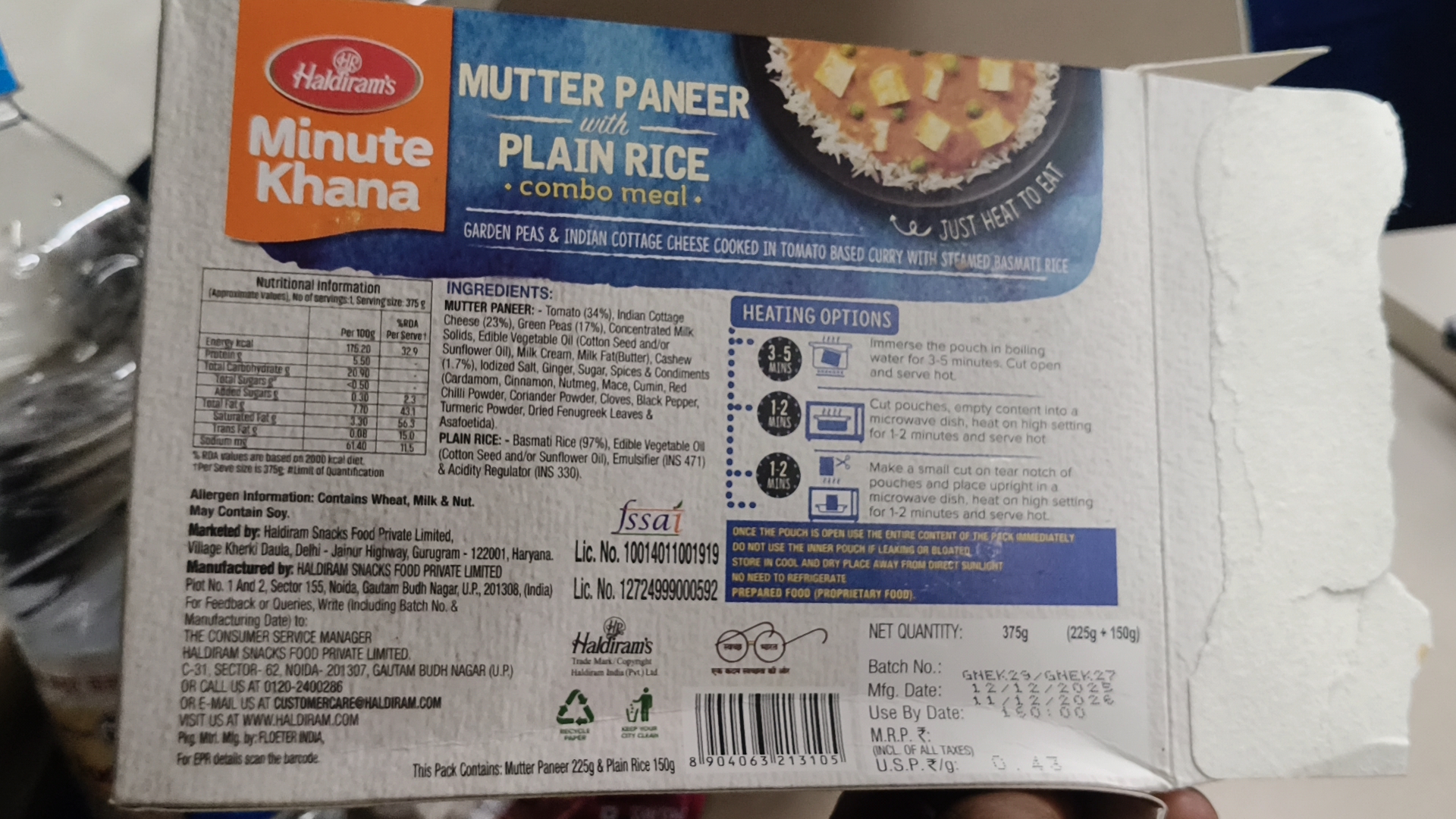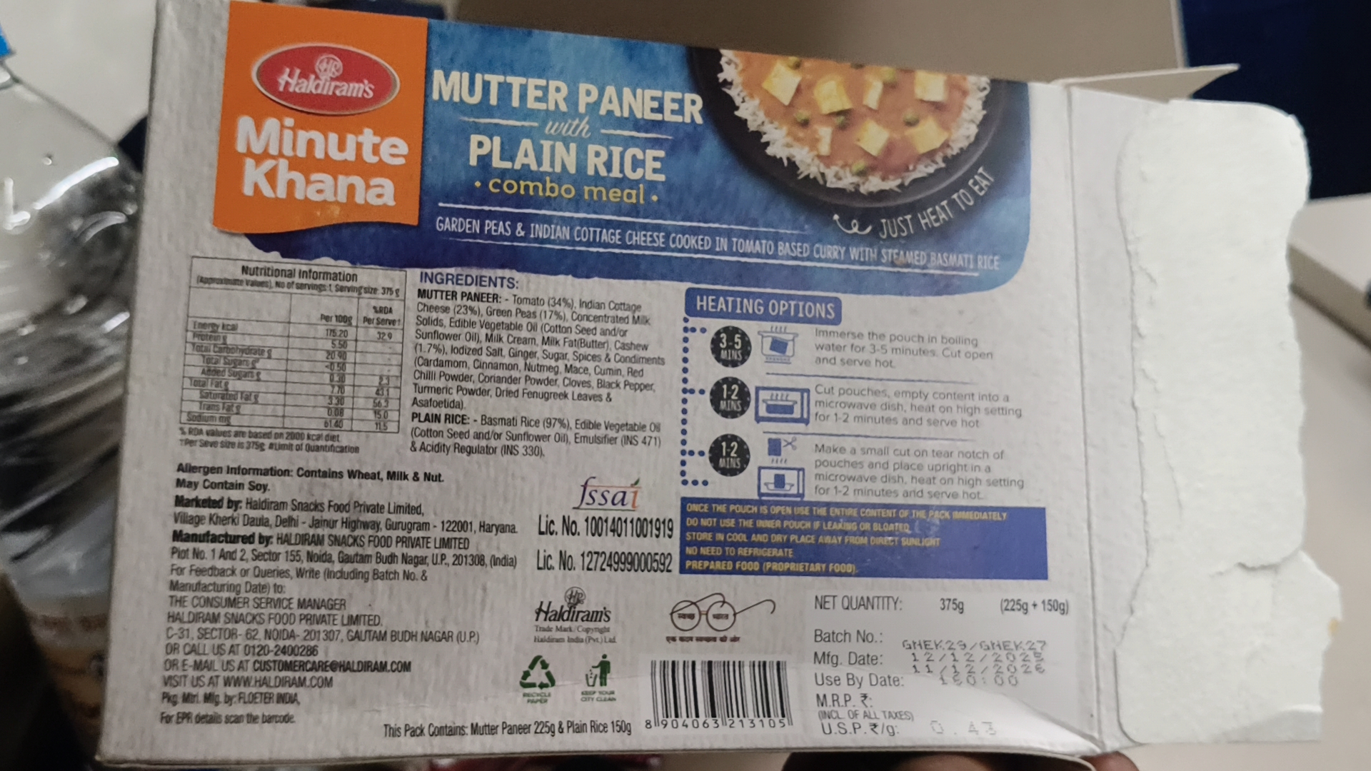 बताया जा रहा है कि यात्री को जो भोजन दिया गया वह हल्दीराम का रेडी-टू-ईट पैकेट था, जिसकी कीमत लगभग 150 रुपये बताई गई। इस तरह के भोजन को पैकेट पर दिए निर्देशों के अनुसार पहले गर्म कर परोसना आवश्यक होता है, लेकिन यात्री का आरोप है कि उन्हें यह खाना बिना गर्म किए ही दे दिया गया।
