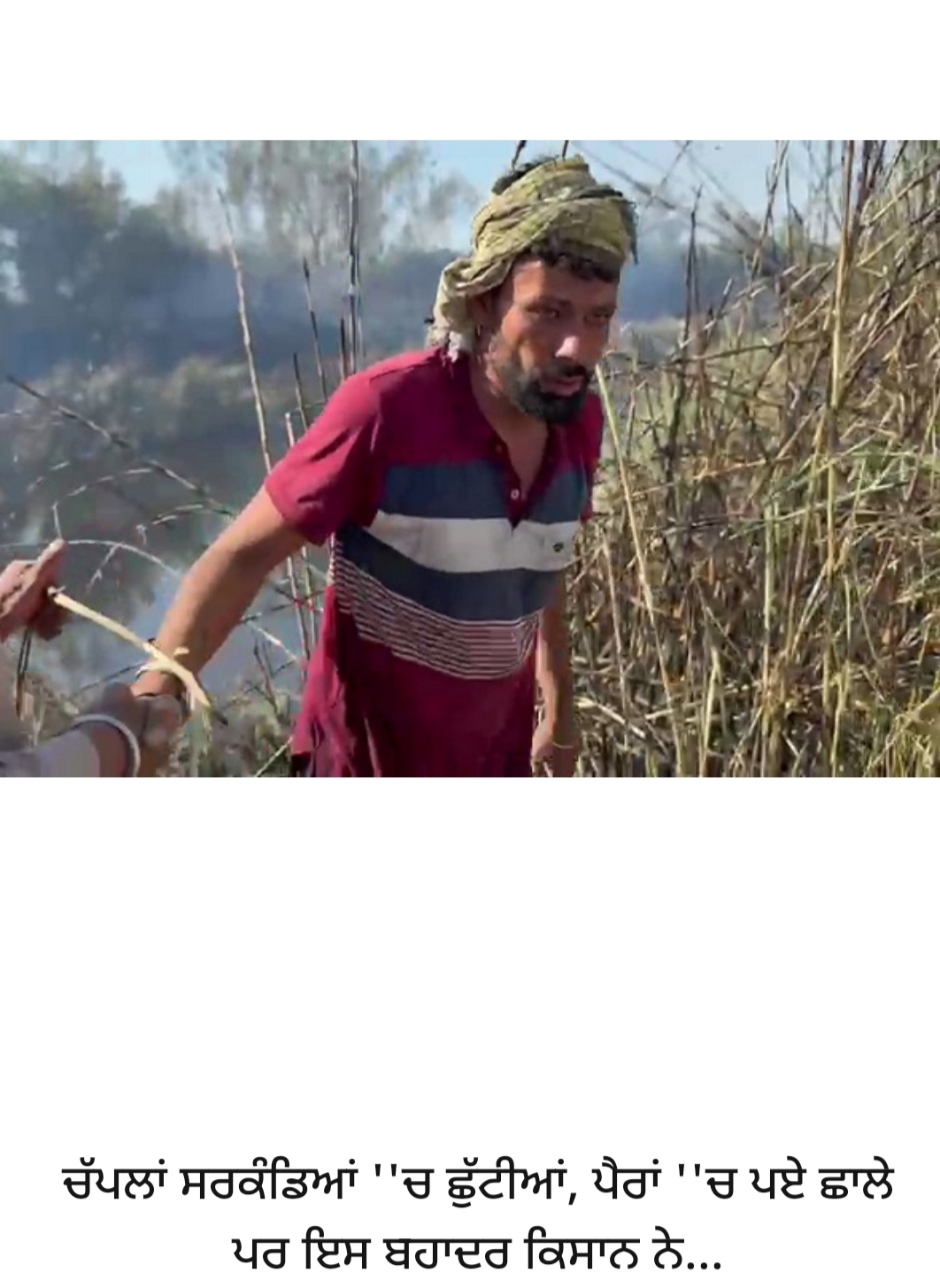 ਹਾਲਾਂਕਿ ਇਸ ਕਿਸਾਨ ਦੀ ਫ਼ਸਲ ਵੀ ਉਕਤ ਇਲਾਕੇ 'ਚ ਨਹੀਂ ਸੀ ਪਰ ਮਦਦ ਕਰਨ ਲਈ ਬਲਦੀ ਅੱਗ 'ਚ ਫਾਇਰ ਬ੍ਰਿਗੇਡ ਦੇ ਪਾਣੀ ਵਾਲੇ ਪਾਈਪ ਲੈ ਕੇ ਉਹ ਸਰਕੰਡਿਆਂ 'ਚ ਵੜ ਗਿਆ। ਇਸ ਦੌਰਾਨ ਉਸ ਦੀਆਂ