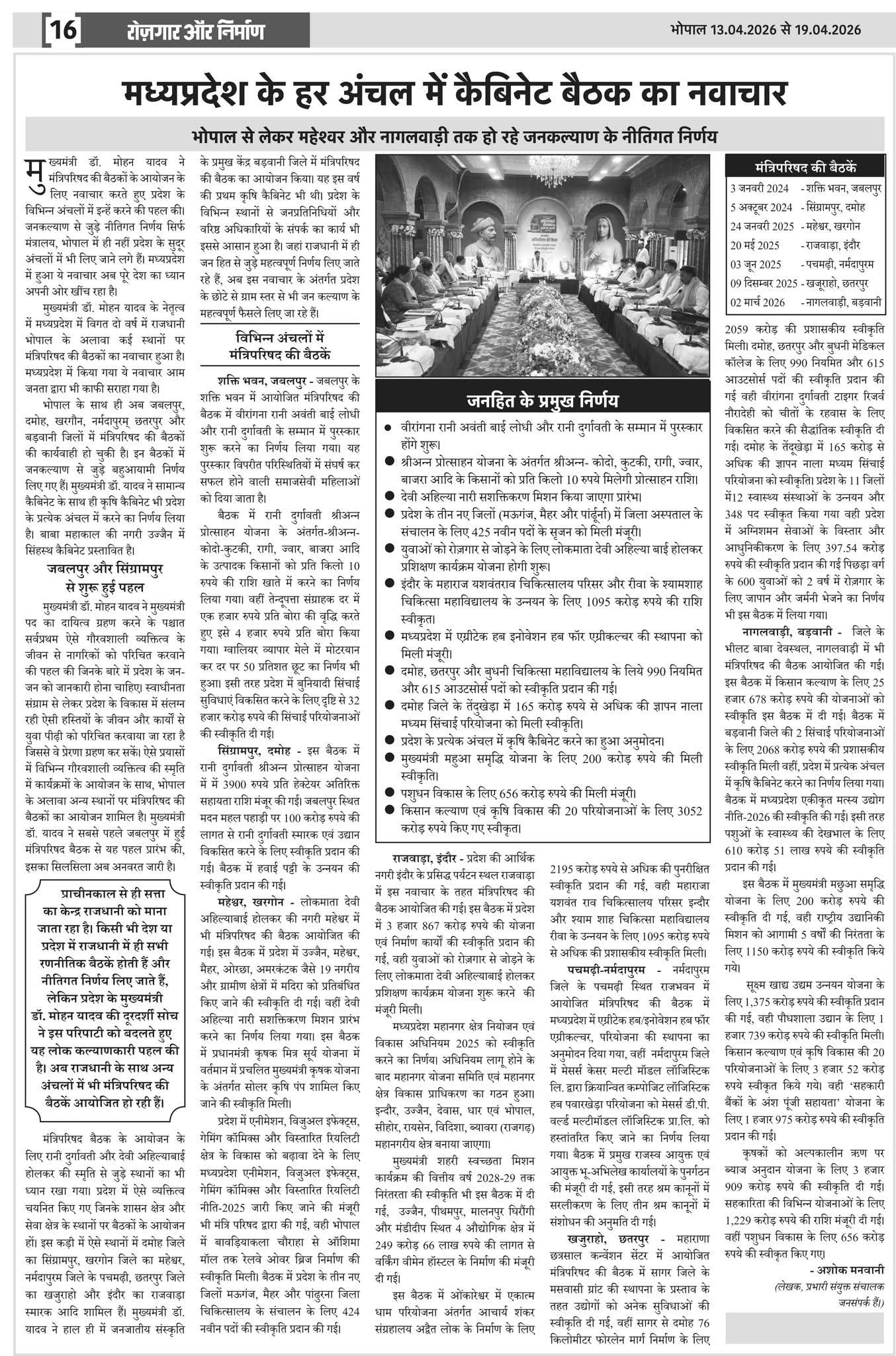 #मध्यप्रदेश के हर अंचल में कैबिनेट बैठक का नवाचार