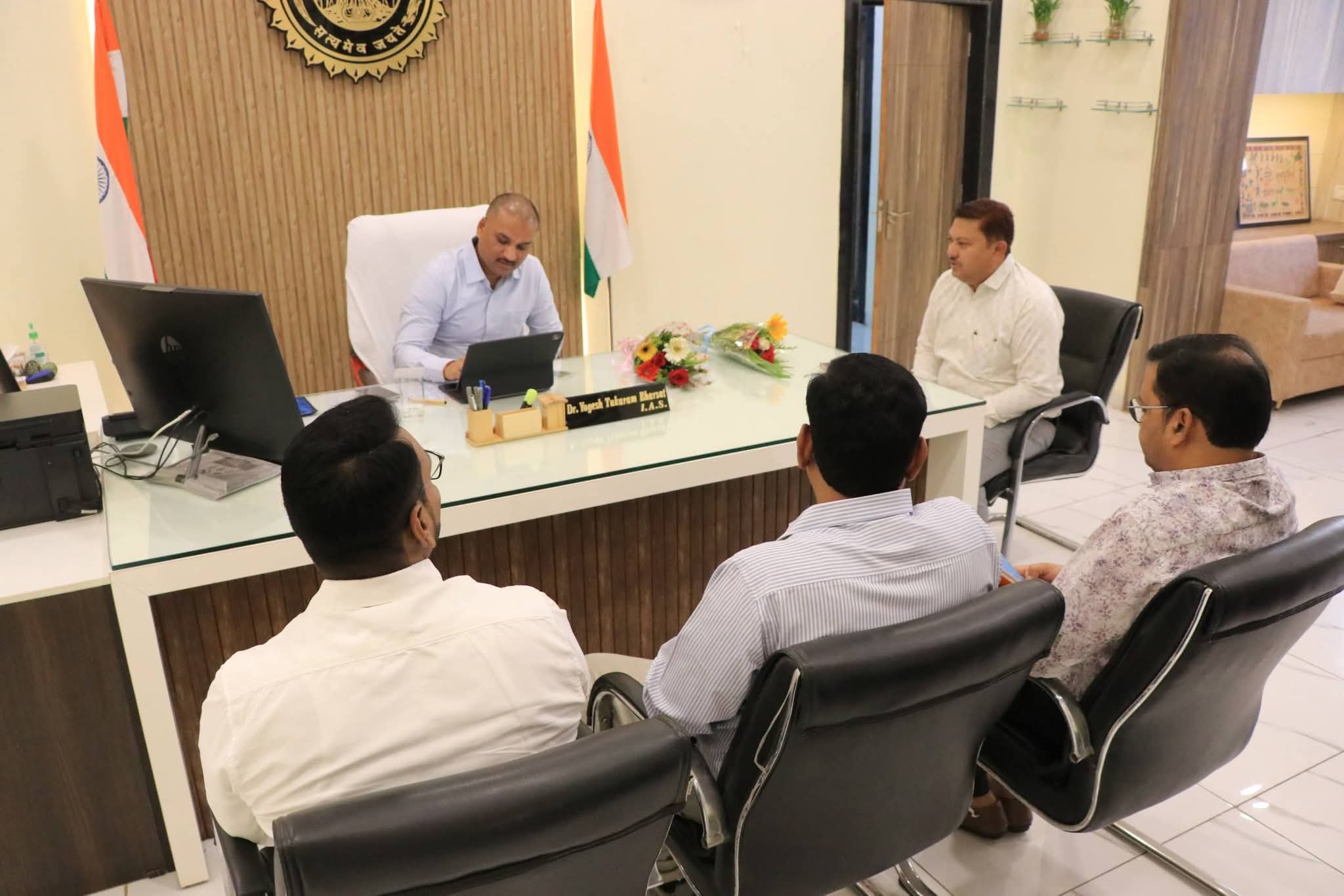 मंदिर दर्शन के उपरांत कलेक्टर डॉ. योगेश तुकाराम भरसट कलेक्टर कार्यालय पहुँचे, जहाँ उन्होंने औपचारिक रूप से पदभार ग्रहण किया। इस अवसर पर उपस्थित अधिकारियों एवं कर्मचारियों ने उनका स्वागत किया। कलेक्टर डॉ. भरसट ने जिले के समग्र विकास, सुशासन एवं जनकल्याणकारी योजनाओं के प्रभावी क्रियान्वयन के प्रति अपनी प्रतिबद्धता व्यक्त की।