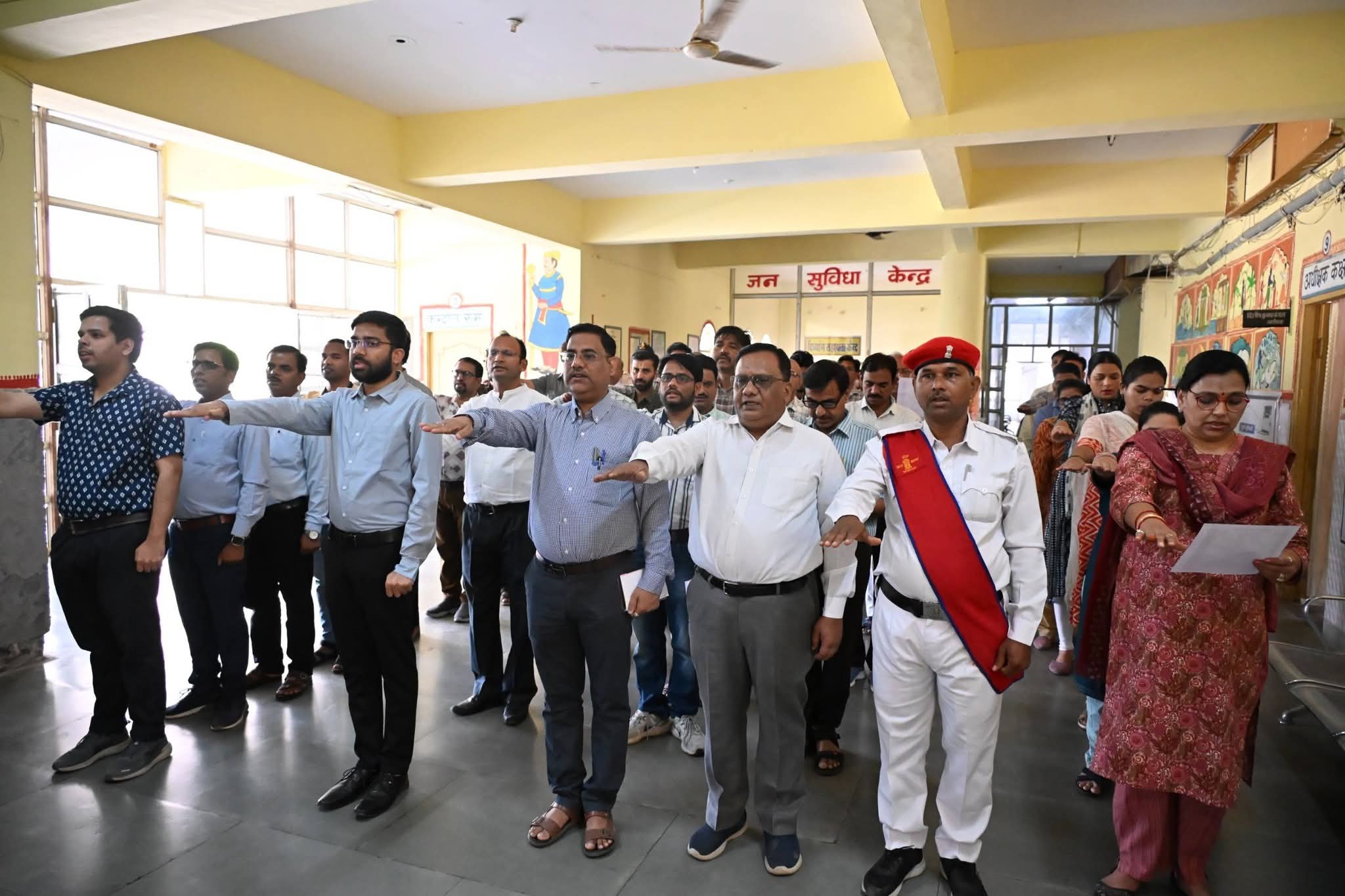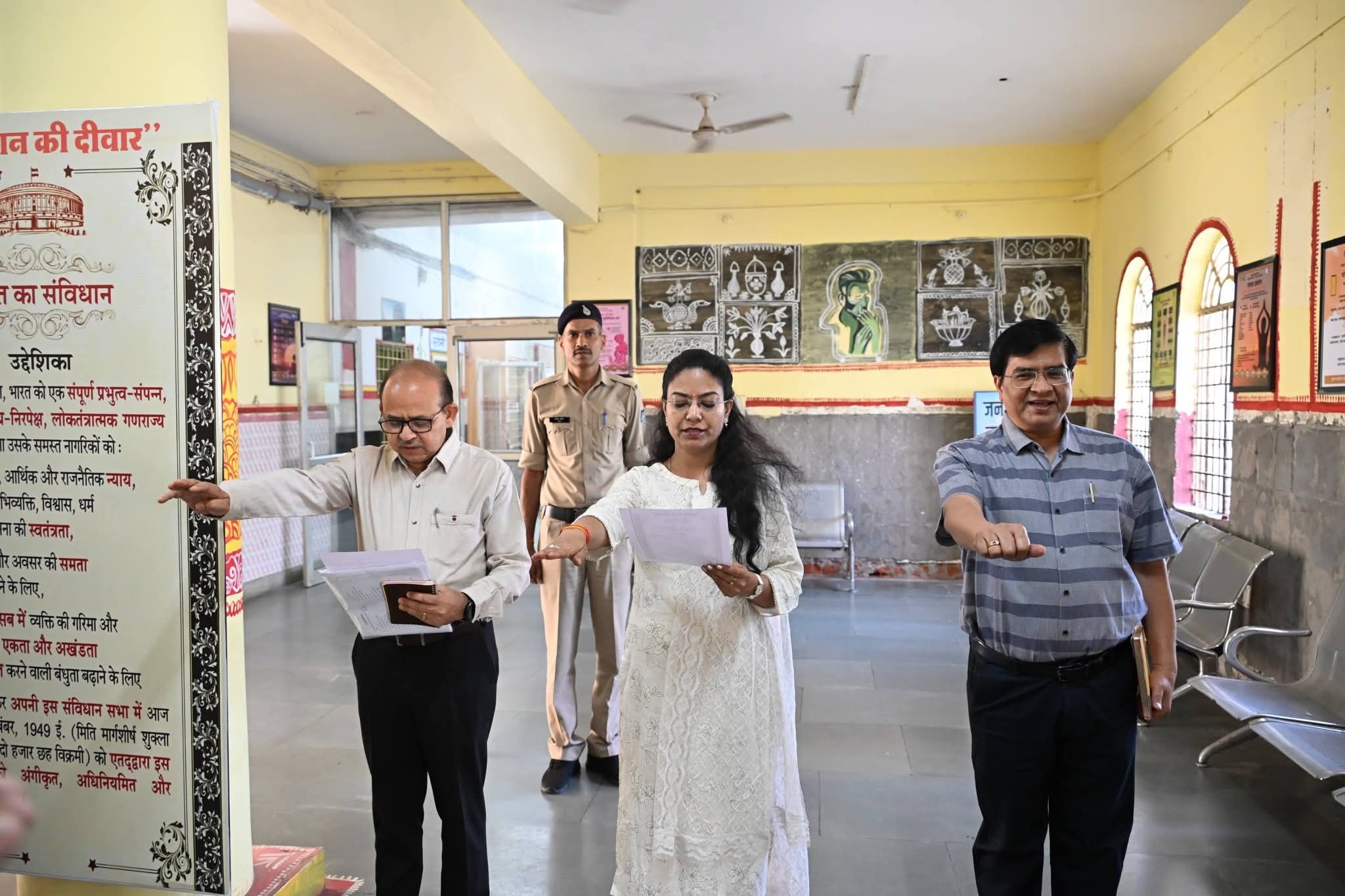 ➡️ #श्योपुर-/ कलेक्टर सुश्री Sheela Dahima IAS के नेतृत्व में आज प्रातः 10 बजे संविधान की प्रस्तावना का सामुहिक वाचन किया गया। कलेक्टर सुश्री शीला दाहिमा ने कलेक्ट्रेट परिसर में सभी अधिकारियों एवं कर्मचारियों को संविधान की उद्देशिका का वाचन कराया।
