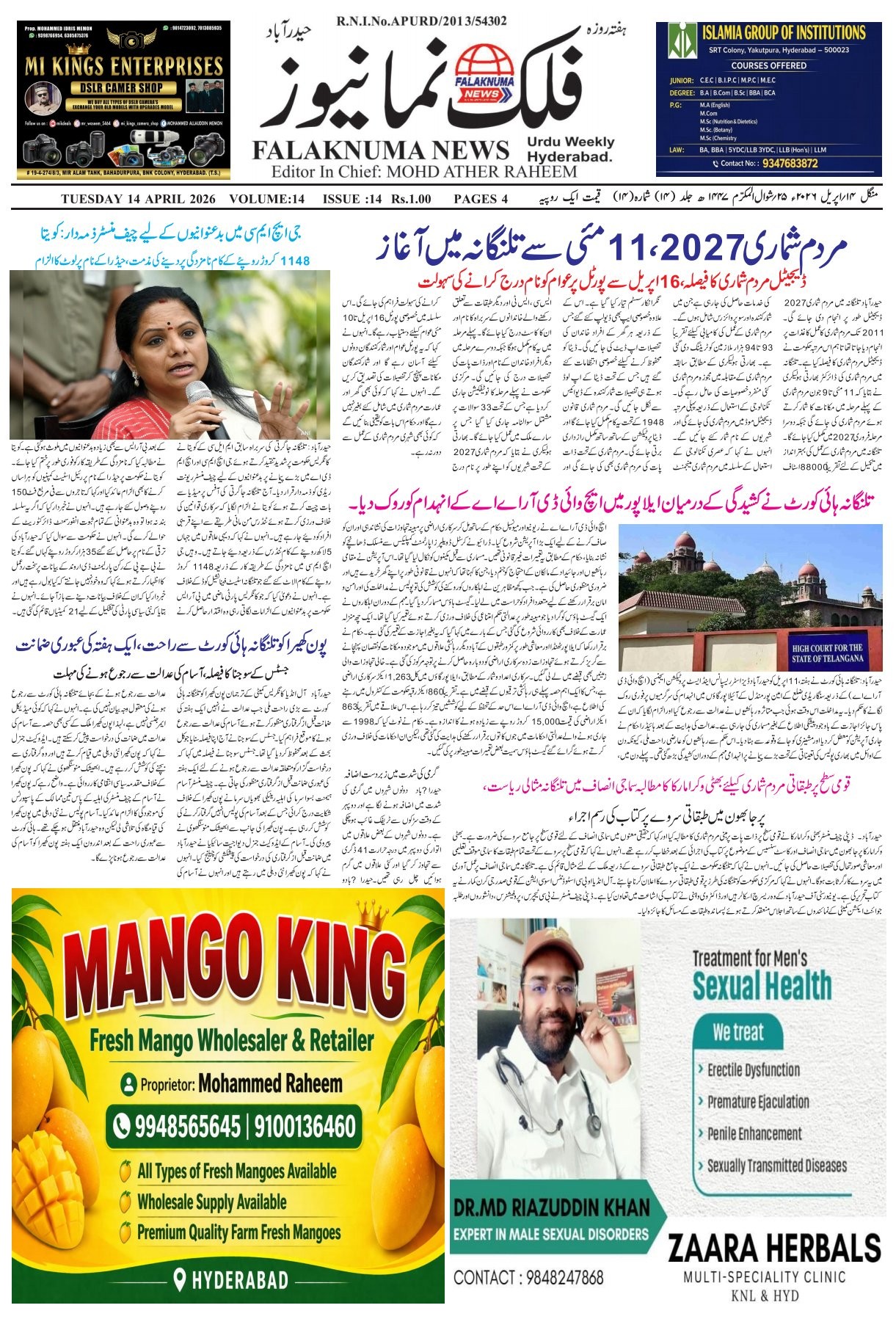 FALAKNUMA NEWS PAPER 14/04/2026
