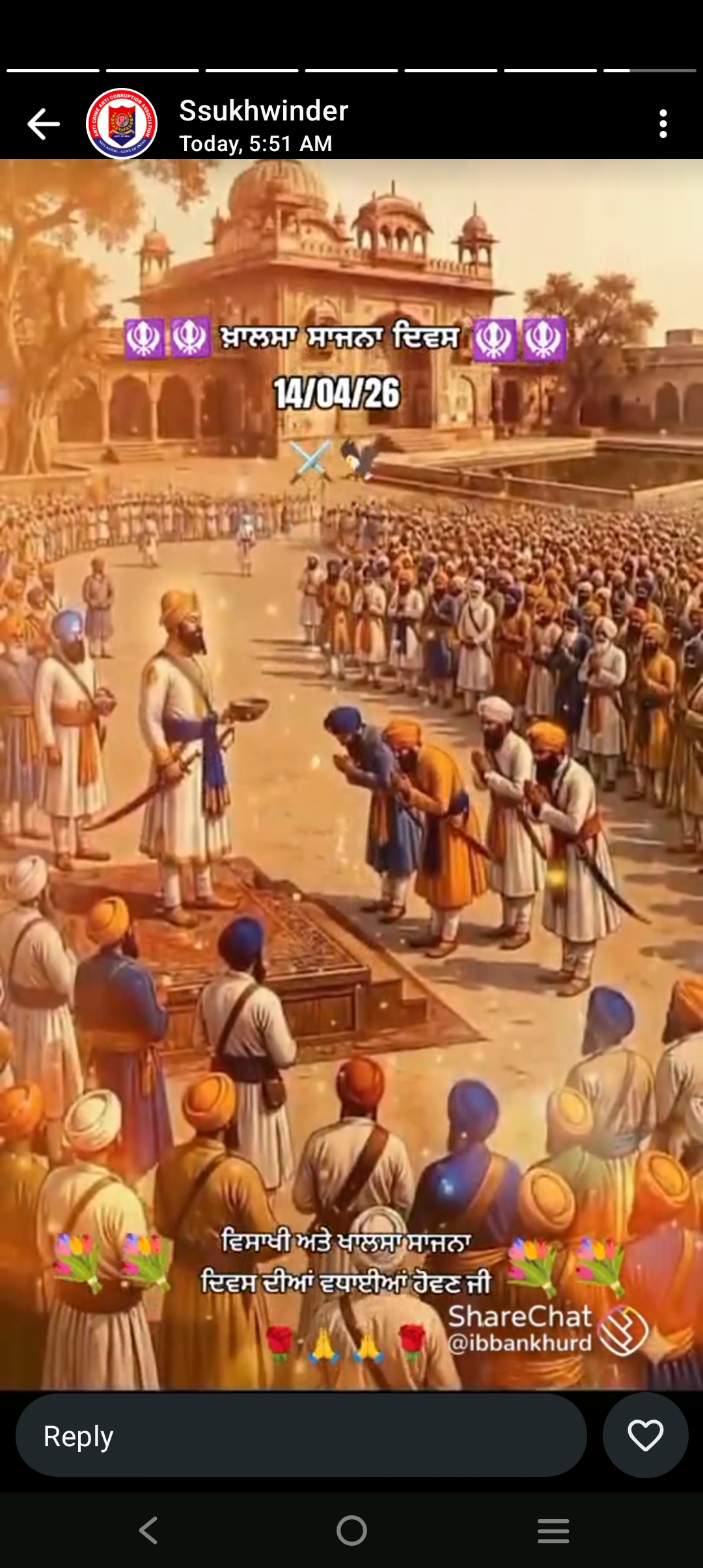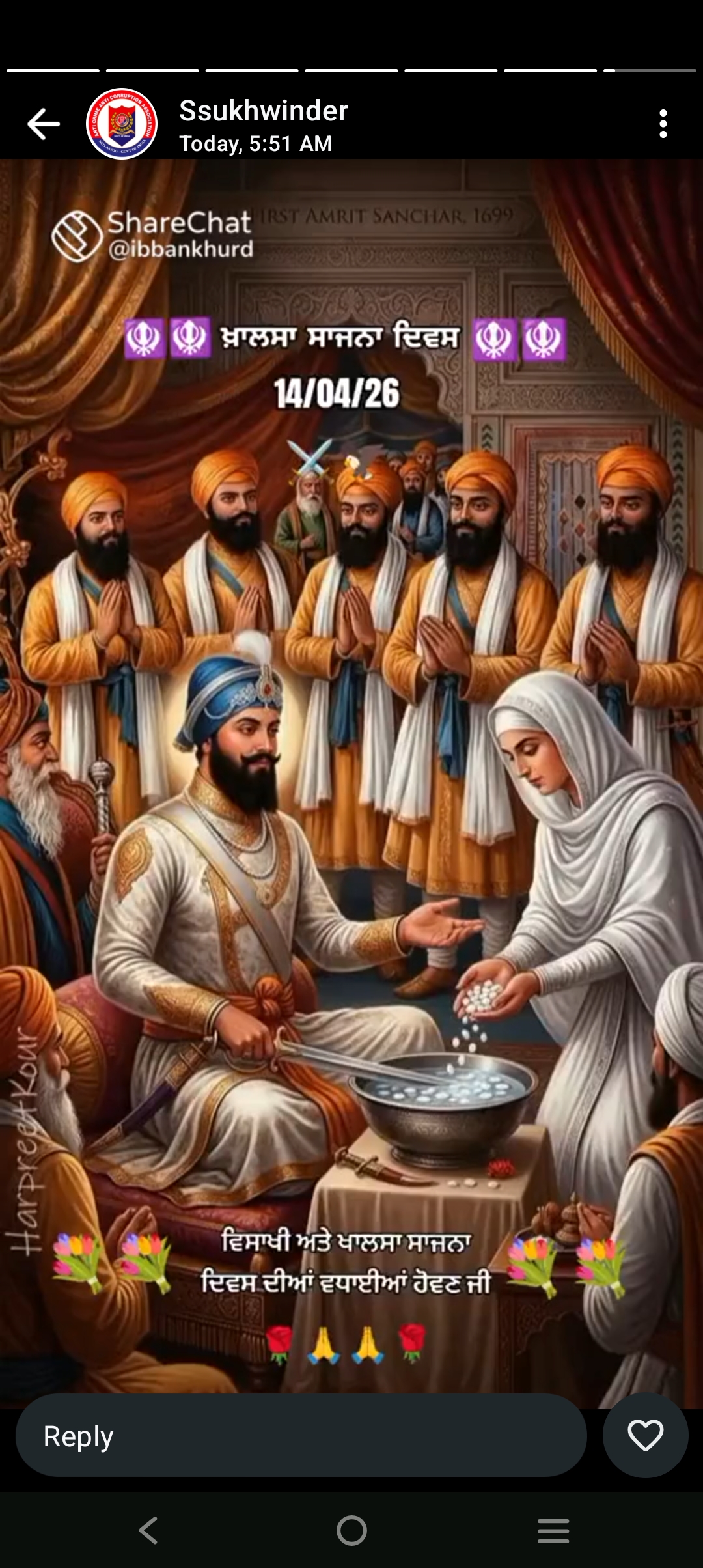 ਜਲੰਧਰ ਸ਼ਹਿਰ ਵਿੱਚ ਬੜੀ ਧੂਮ ਧਾਮ ਨਾਲ ਖਾਲਸਾ ਦਿਵਸ ਨਗਰ ਕੀਰਤਨ ਕੱਢ ਕੇ ਇਕ ਦਿਨ ਪਹਿਲਾ ਮਨਾਇਆ ਗਿਆ ਵਿਸਾਖੀ ਦੀਆਂ ਲੱਖ ਲੱਖ ਵਧਾਈਆਂ ਦਿੰਦੇ ਹੋਏ ਸੰਗਤਾਂ ਨੇ ਧੂਮਧਾਮ ਨਾਲ ਹਰ ਸ਼ਹਿਰ ਵਿੱਚ ਹਰ ਥਾਂ ਤੇ ਲੰਗਰ ਦੀ ਸੇਵਾ ਦੀ ਦਿੱਤੀ ਅਤੇ ਖਾਲਸਾ ਦਿਵਸ ਬਾਰੇ ਲੋਕਾਂ ਨੂੰ ਦੱਸਿਆ ਗਿਆ ਇਸ ਵਿਸਾਖੀ ਵਾਲੇ ਦਿਨ ਸਾਹਿਬ ਸ੍ਰੀ ਗੁਰੂ ਗੋਬਿੰਦ ਸਿੰਘ ਮਹਾਰਾਜ ਜੀ ਨੇ ਖਾਲਸਾ ਪੰਥ ਦੀ ਸਥਾਪਨਾ ਕੀਤੀ ਅਤੇ ਪੰਜ ਪਿਆਰਿਆਂ ਨੂੰ ਅੰਮ੍ਰਿਤ ਛਕਾ ਕੇ ਖਾਲਸਾ ਫੌਜ ਤਿਆਰ ਕਰਕੇ ਸਿੰਘ ਸਜਾਏ ਗਏ ਇਸ ਮੌਕੇ ਤੇ ਜਲੰਧਰ ਦੀਆਂ ਸਮਾਜ ਸੇਵੀ ਸੰਸਥਾਵਾਂ ਹਿੱਸਾ ਲਿਆ ਅਤੇ ਹਰ ਗੁਰਦੁਆਰੇ ਦੀ ਕਮੇਟੀ ਨੇ ਬੜੇ ਧੂਮਧਾਮ ਨਾਲ ਵਿਸਾਖੀ ਦੇ ਪਹਿਲਾਂ ਨਗਰ ਕੀਰਤਨ ਕੱਢ ਕੇ ਖਾਲਸਾ ਦਿਵਸ ਦਸਤਾਰ ਦਿਵਸ ਜਲੰਧਰ ਸ਼ਹਿਰ ਵਿੱਚ ਮਨਾਇਆ ਗਿਆ। ਇਸ ਵਿੱਚ ਐਂਟੀ ਕਰਾਈਮੈਂਟੀ ਕਰਪਸ਼ਨ ਦੇ ਪ੍ਰਧਾਨ ਸੁਰਿੰਦਰ ਸਿੰਘ ਕੈਰੋ ਜੀ ਨੇ ਕਿਹਾ ਹੈ ਸਾਨੂੰ ਹਰ ਸਾਲ ਇਸੇ ਤਰ੍ਹਾਂ ਹੀ ਨਗਰ ਕੀਰਤਨ ਕੱਢਣੇ ਚਾਹੀਏ ਹਨ ਅਤੇ ਗੁਰੂ ਗ੍ਰੰਥ ਸਾਹਿਬ ਮਹਾਰਾਜ ਦੀਆਂ ਖੁਸ਼ੀਆਂ ਪ੍ਰਾਪਤ ਕਰਨੀਆਂ ਚਾਹੀਦੀਆਂ ਹਨ ਅਤੇ ਅੱਜ ਦੇ ਦਿਨ ਵਿਸਾਖੀ ਵਾਲੇ ਦਿਨ ਸਾਡੇ ਸਾਹਿਬ ਸ੍ਰੀ ਗੁਰੂ ਗੋਬਿੰਦ ਸਿੰਘ ਮਹਾਰਾਜ ਜੀ ਨੇ ਜੋ ਖਾਲਸਾ ਪੰਥ ਦੀ ਸਥਾਪਨਾ ਕੀਤੀ ਸੀ ਉਹਨਾਂ ਨੂੰ ਲੋਕਾਂ ਨੂੰ ਦੱਸ ਕੇ ਉਹਨਾਂ ਨੂੰ ਉਹਨਾਂ ਦਾ ਪਿਆਰ ਲੈਣਾ ਚਾਹੀਦਾ ਹੈ ਅਤੇ ਖਾਲਸਾ ਦਿਵਸ ਮਨਾਉਣਾ ਚਾਹੀਦਾ ਹੈ ਇਸ ਵਿੱਚ ਸੰਗਤਾਂ ਇਸ ਦਿਨ ਅਨੰਦਪੁਰ ਸਾਹਿਬ ਵਿੱਚ ਮੱਥਾ ਟੇਕਣ ਵੀ ਜਾਂਦੀਆਂ ਹਨ ਗੁਰੂ ਕੀ ਨਗਰੀ ਧੰਨ ਧੰਨ ਸ੍ਰੀ ਗੁਰੂ ਗੋਬਿੰਦ ਸਿੰਘ ਮਹਾਰਾਜ ਜਿਨਾਂ ਨੇ ਖਾਲਸਾ ਪੰਥ ਦੀ ਸਥਾਪਨਾ ਇਸ ਦਿਨ ਕੀਤੀ ਸੀ ਸਾਰਿਆਂ ਨੂੰ ਵਿਸਾਖੀ ਦੀਆਂ ਅਤੇ ਖਾਲਸਾ ਜੋ ਉਸ ਦੀਆਂ ਲੱਖ ਲੱਖ ਵਧਾਈਆਂ ਵਾਹਿਗੁਰੂ ਜੀ ਕਾ ਖਾਲਸਾ ਵਾਹਿਗੁਰੂ ਜੀ ਕੀ ਫਤਿਹ।