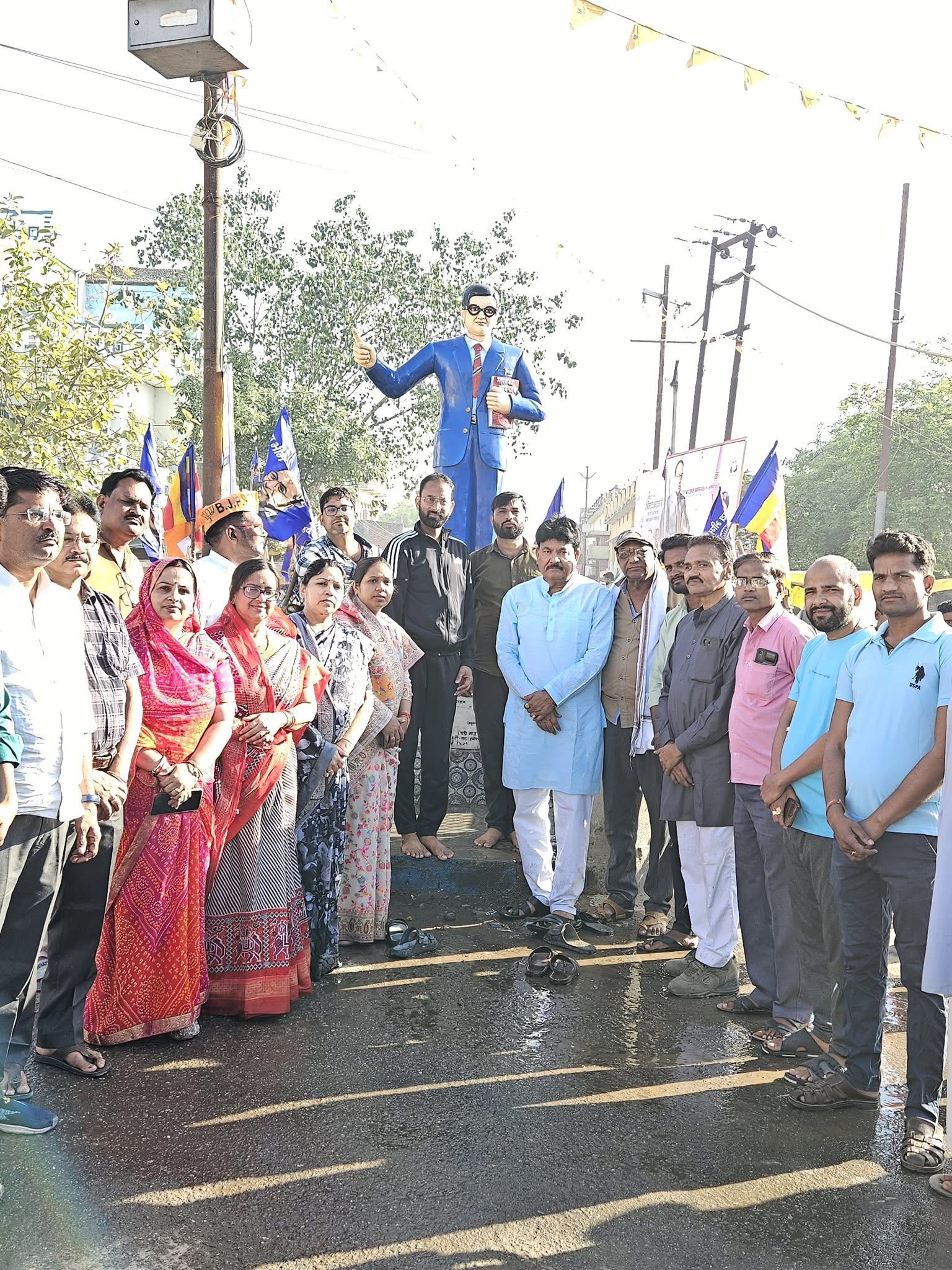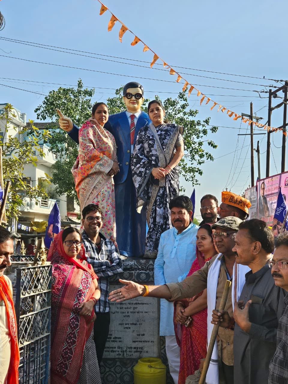 श्रद्धांजलि: जनप्रतिनिधियों ने बाबा साहब की मूर्ति को जल से स्नान कराया और दीप प्रज्वलन कर अपनी पुष्पांजलि अर्पित की।