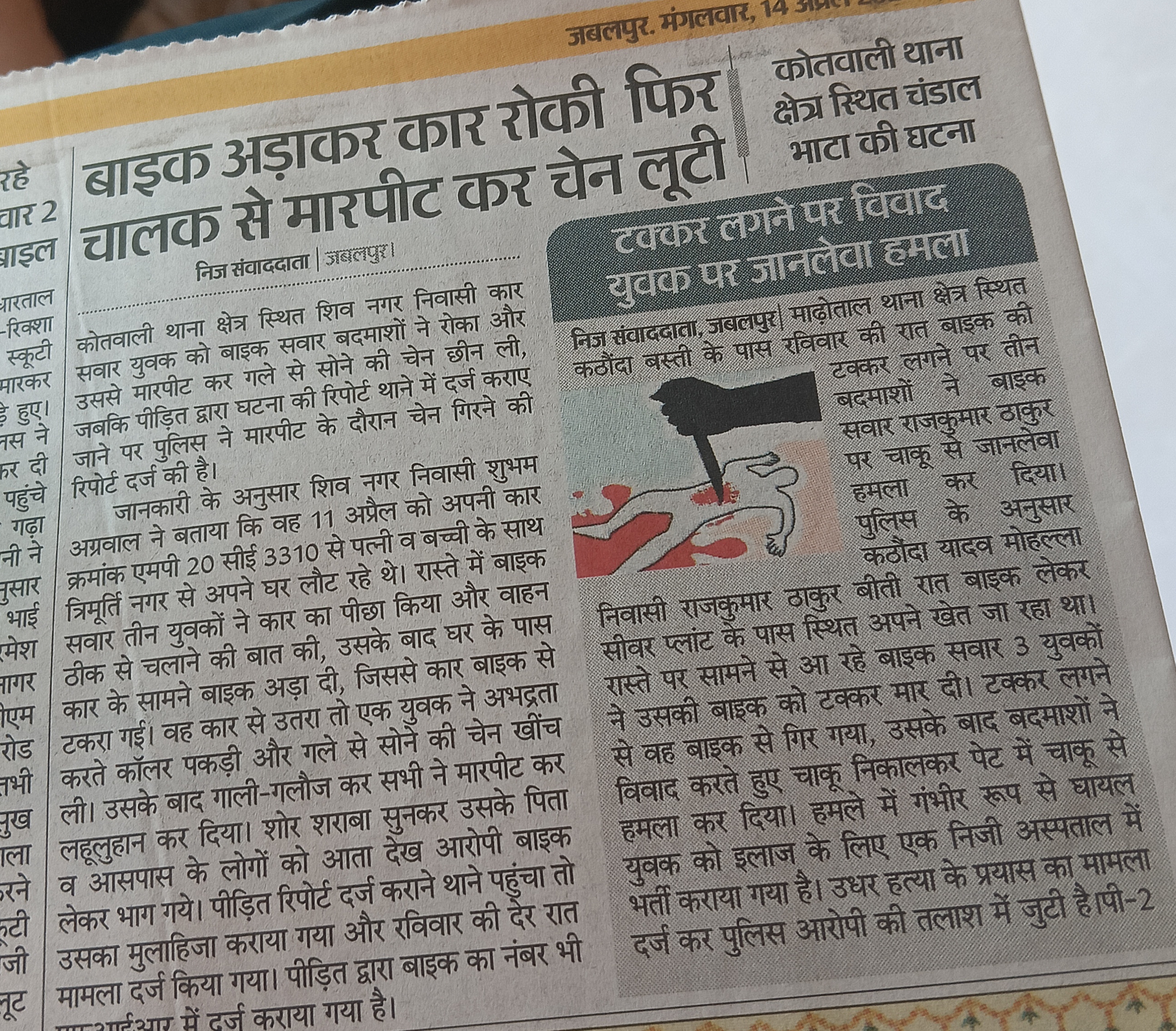बाइक अडाकर कार रोकी फिर चालक से मारपीटी कर चेन लूटी