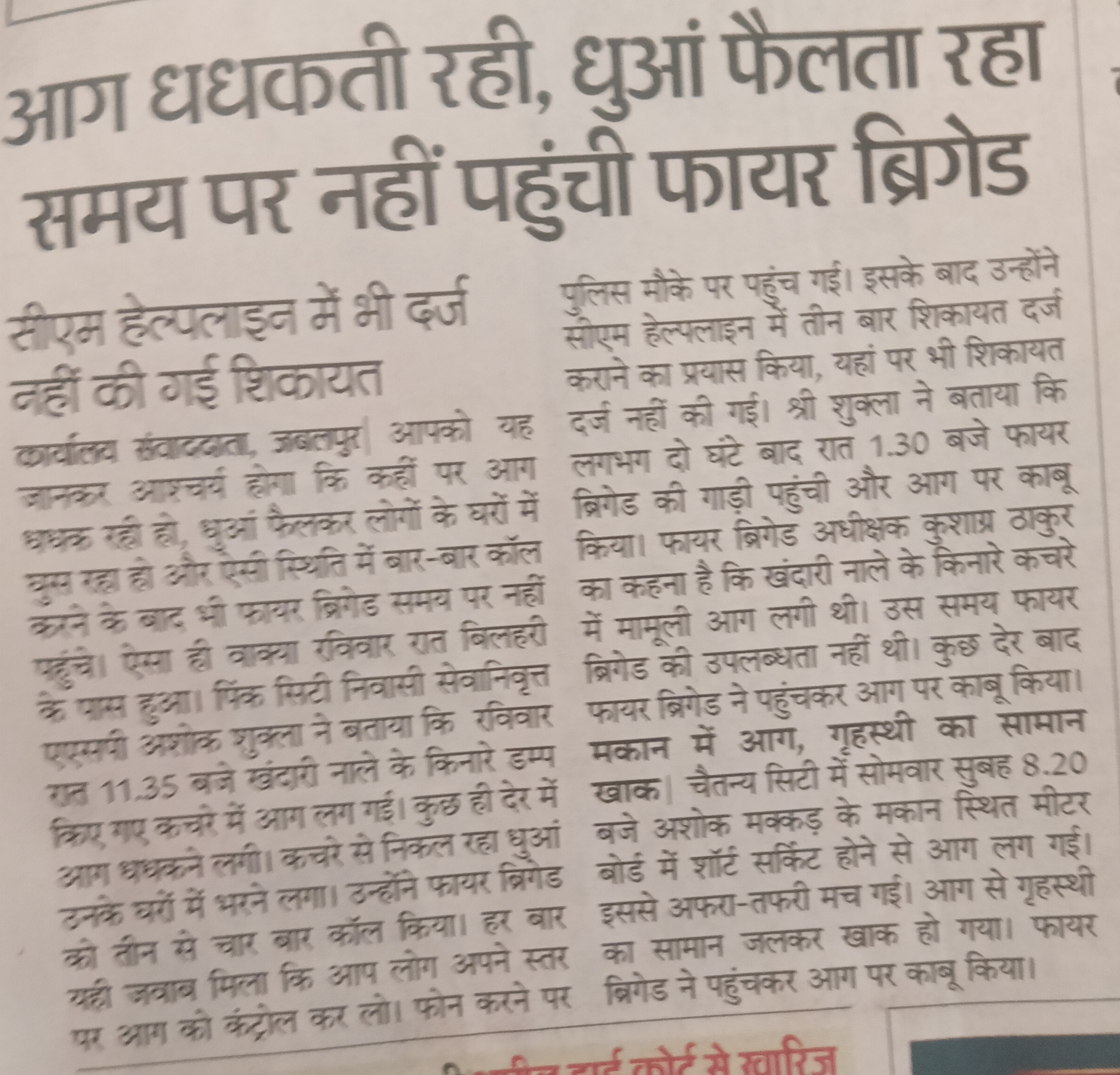 आग घघकती रही हुआं फैलता रहा समय पर नहीं पहुंच फायर ब्रिगेड