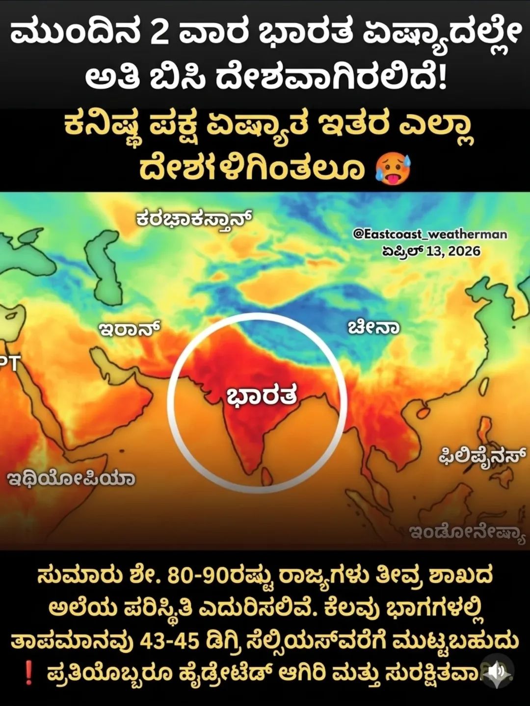 ಮುಂದಿನ 2 ವಾರಗಳಲ್ಲಿ ದೇಶದ ಹಲವೆಡೆ ತೀವ್ರ ಶಾಖದ ಅಲೆ 🌡️ ಎದುರಾಗಬಹುದು… ಕೆಲ ಪ