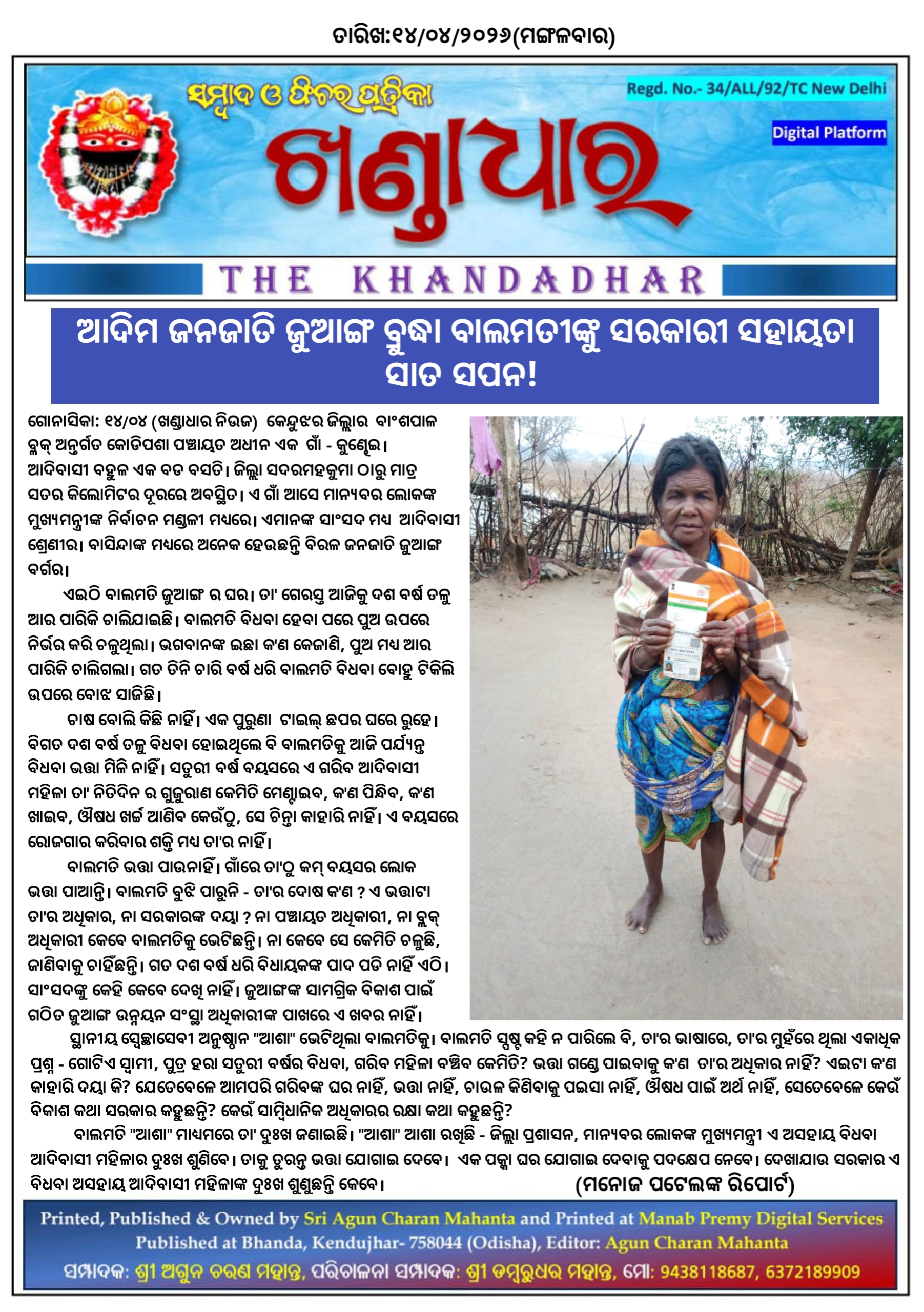 ଖଣ୍ଡାଧାର ନିଉଜ- ମନୋଜ ପଟେଲଙ୍କ ରିପୋର୍ଟ।