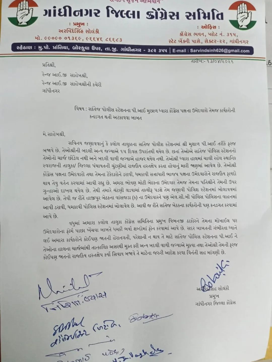 ગાંધીનગર કોંગ્રેસે સાતેજ પી.આઈ સામે કાર્યવાહી કરવા કલેકટરને આવેદન આપ્યું.