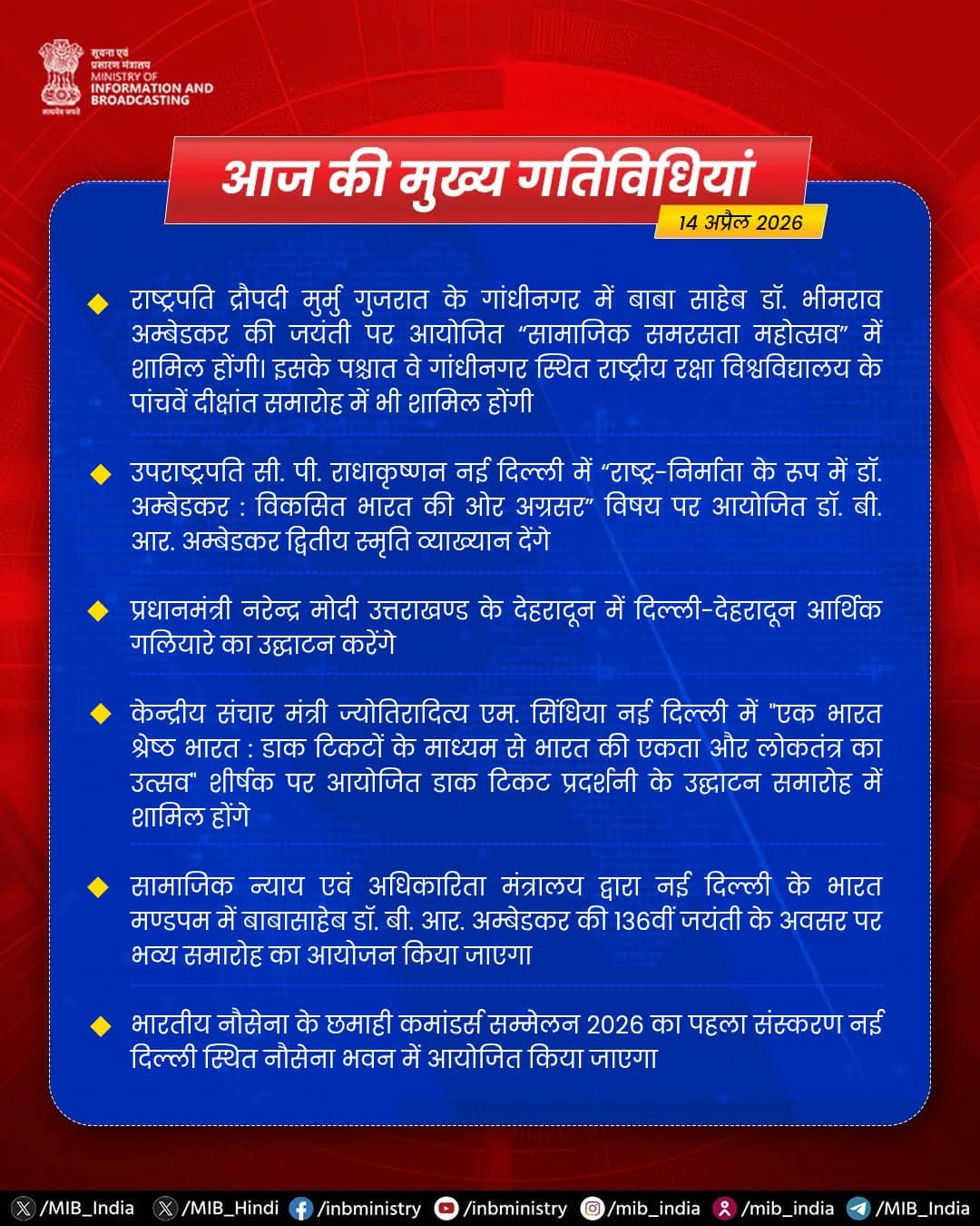 आज की प्रमुख गतिविधियां एक नजर में Vice President of India Narendra Modi Jyotiraditya M Scindia Ministry of Social Justice and Empowerment, Government of India