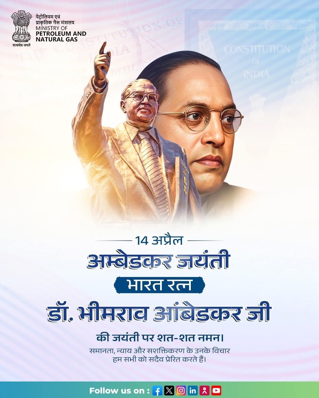 अम्बेडकर जयंती के अवसर पर भारत रत्न डॉ. भीमराव आंबेडकर जी को नमन।