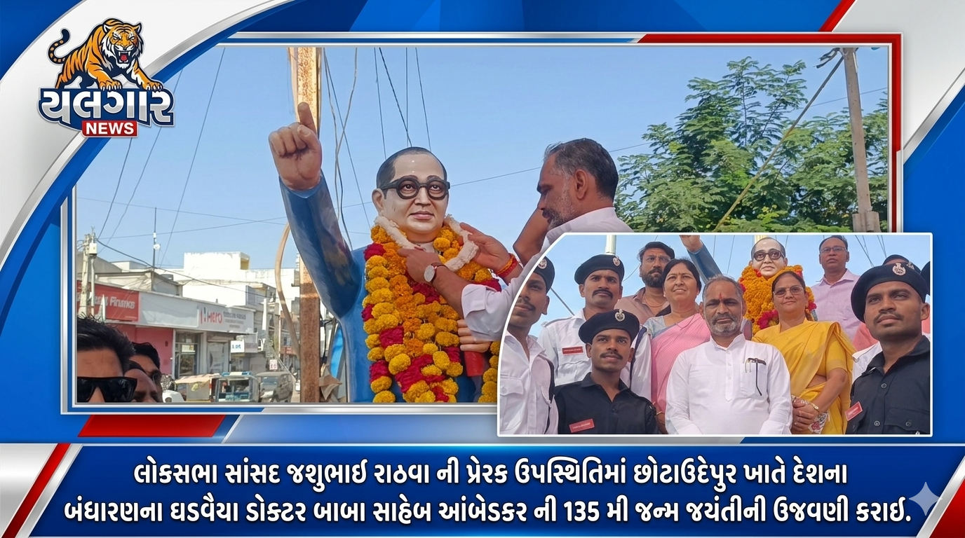 લોકસભા સાંસદ જશુભાઈ રાઠવા ની પ્રેરક ઉપસ્થિતિમાં છોટાઉદેપુર ખાતે દેશના બંધારણના ઘડવૈયા ડોક્ટર બાબા સાહેબ આંબેડકર ની 135 મી જન્મ જયંતીની ઉજવણી કરાઈ.