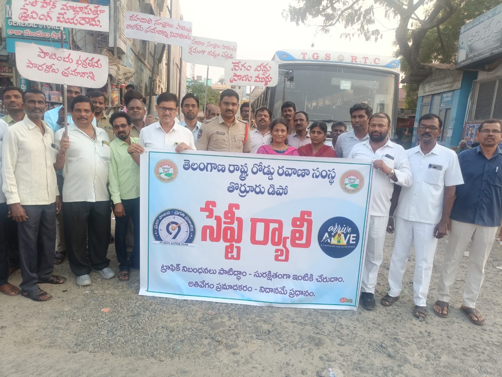 ఆర్టీసీ ఉద్యోగుల ఆధ్వర్యంలో రోడ్ సేఫ్టీ ర్యాలీ