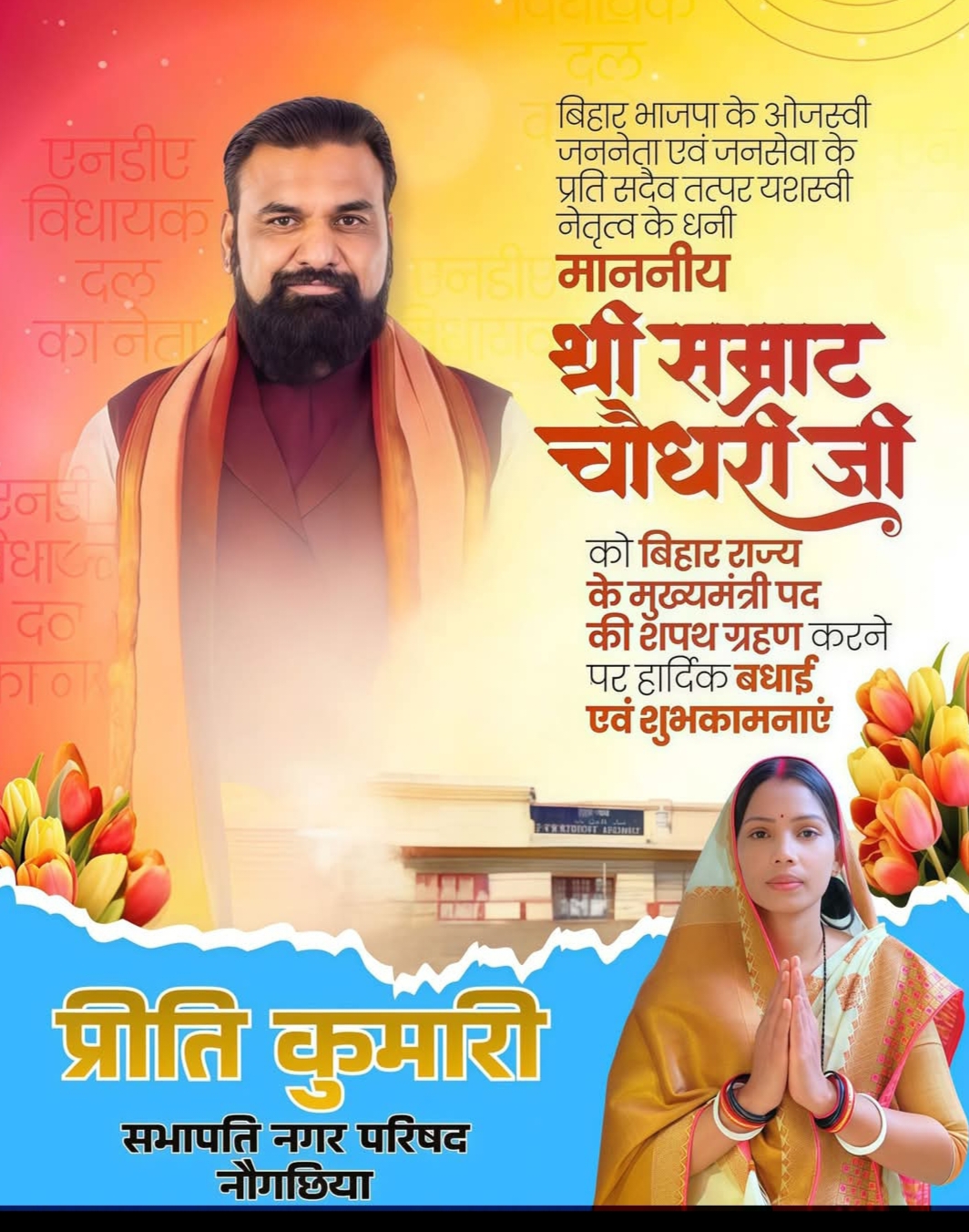 बिहार के मुख्यमंत्री पद की शपथ ग्रहण करने पर श्री सम्राट चौधरी जी को हार्दिक बधाई एवं अनंत शुभकामनाएं।