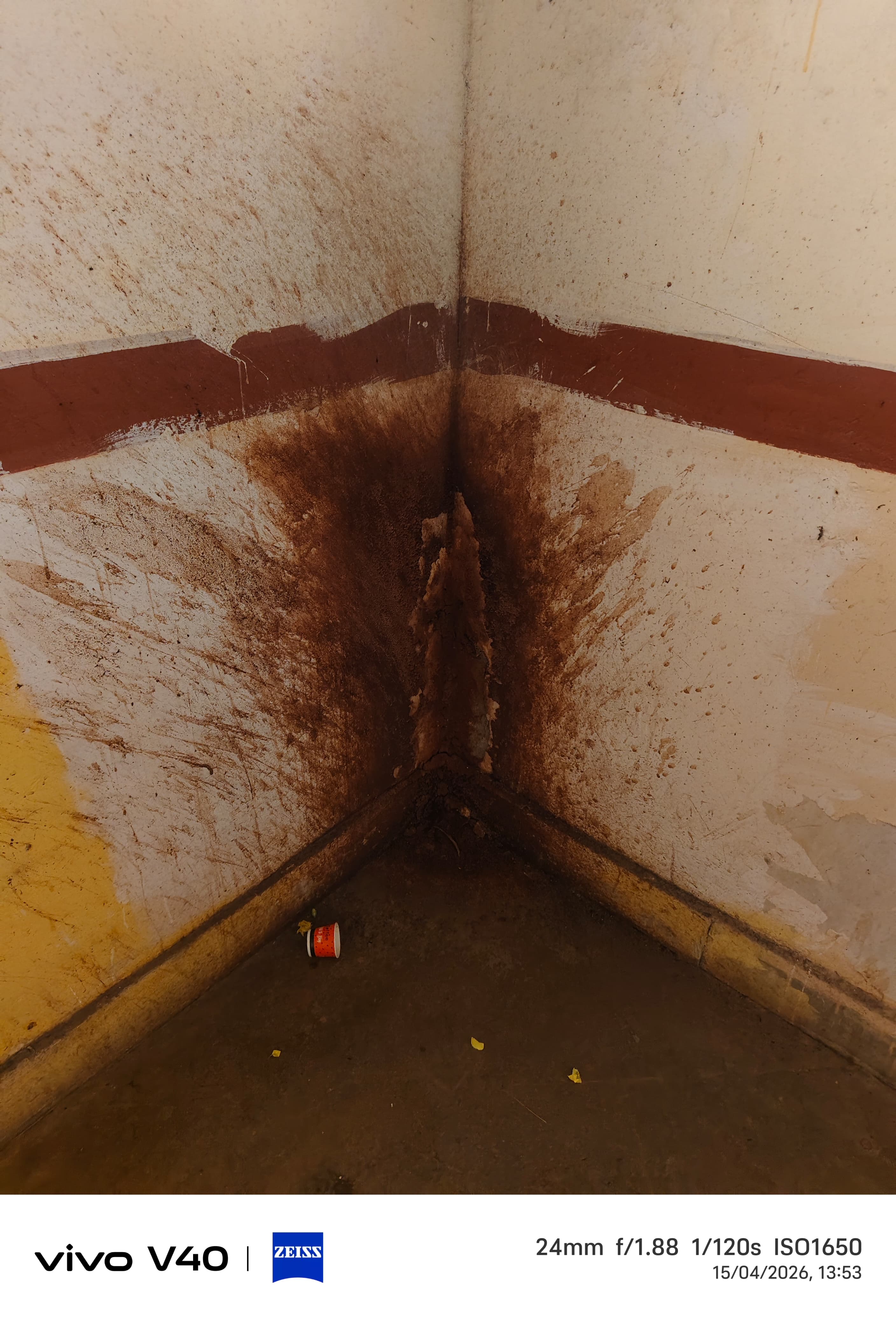 तस्वीर में साफ देखा जा सकता है कि दीवारों के कोने में भारी मात्रा में गंदगी जमा है, जिससे न केवल परिसर की छवि खराब हो रही है, बल्कि वहां आने-जाने वाले कर्मचारियों और आम लोगों को भी असुविधा का सामना करना पड़ रहा है। बदबू और अस्वच्छ माहौल के चलते स्वास्थ्य संबंधी खतरे भी बढ़ सकते हैं।