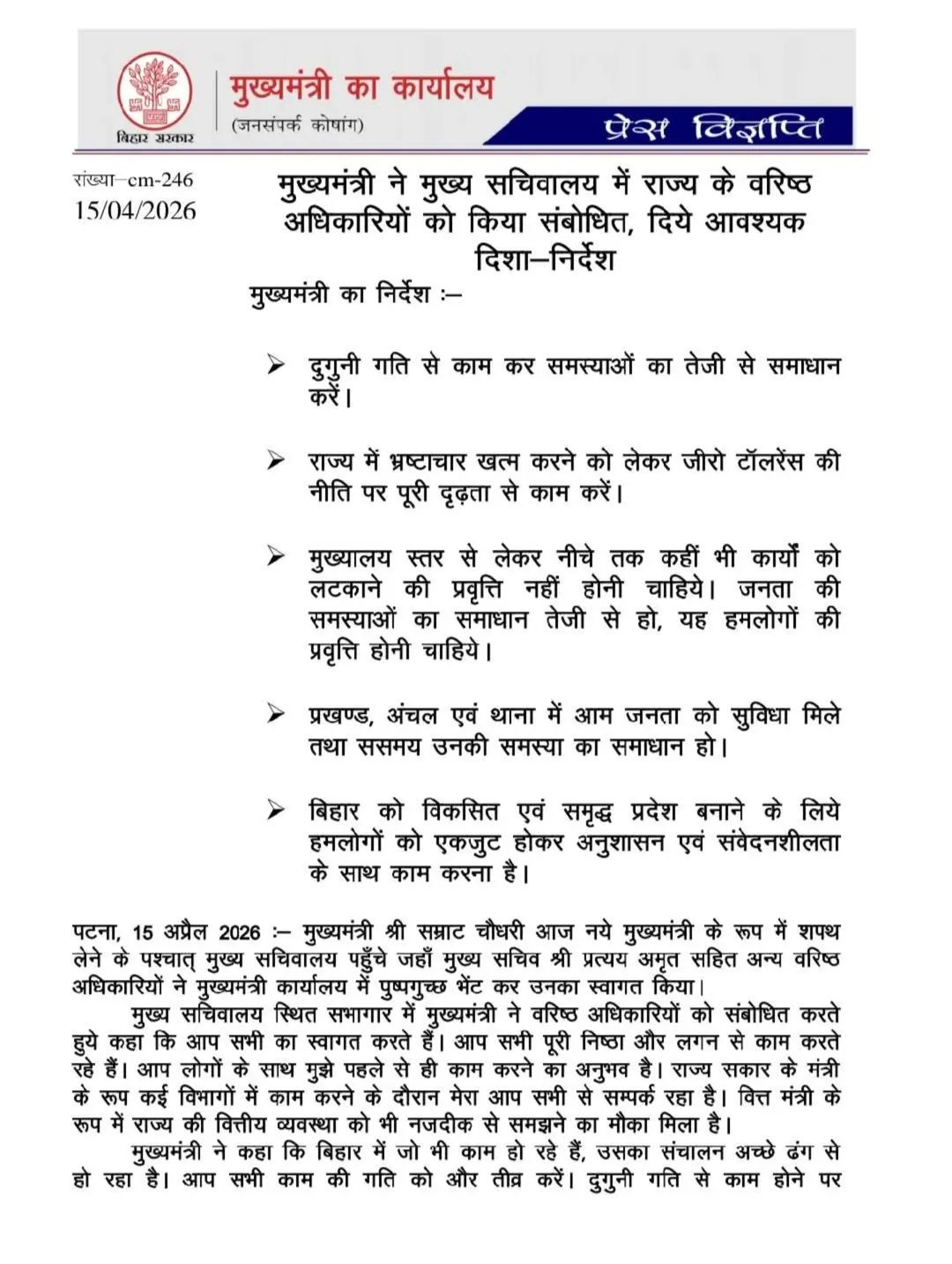 बिहार में ‘एक्शन मोड’ में CM सम्राट चौधरी