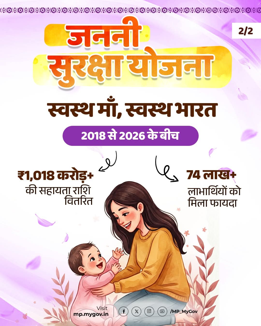 जननी सुरक्षा योजना के माध्यम से हर माँ को सुरक्षित प्रसव का अधिकार सुनिश्चित किया जा रहा है।