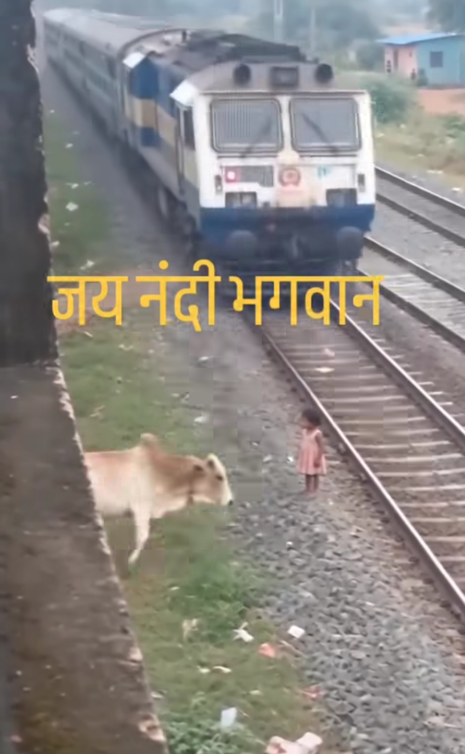 # **मौत के मुंह से नन्ही जान खींच लाई 'गौ माता': रेलवे ट्रैक पर ढाल बनी गाय, रोंगटे खड़े कर देने वाला वीडियो वायरल** /सोशल मीडिया:**