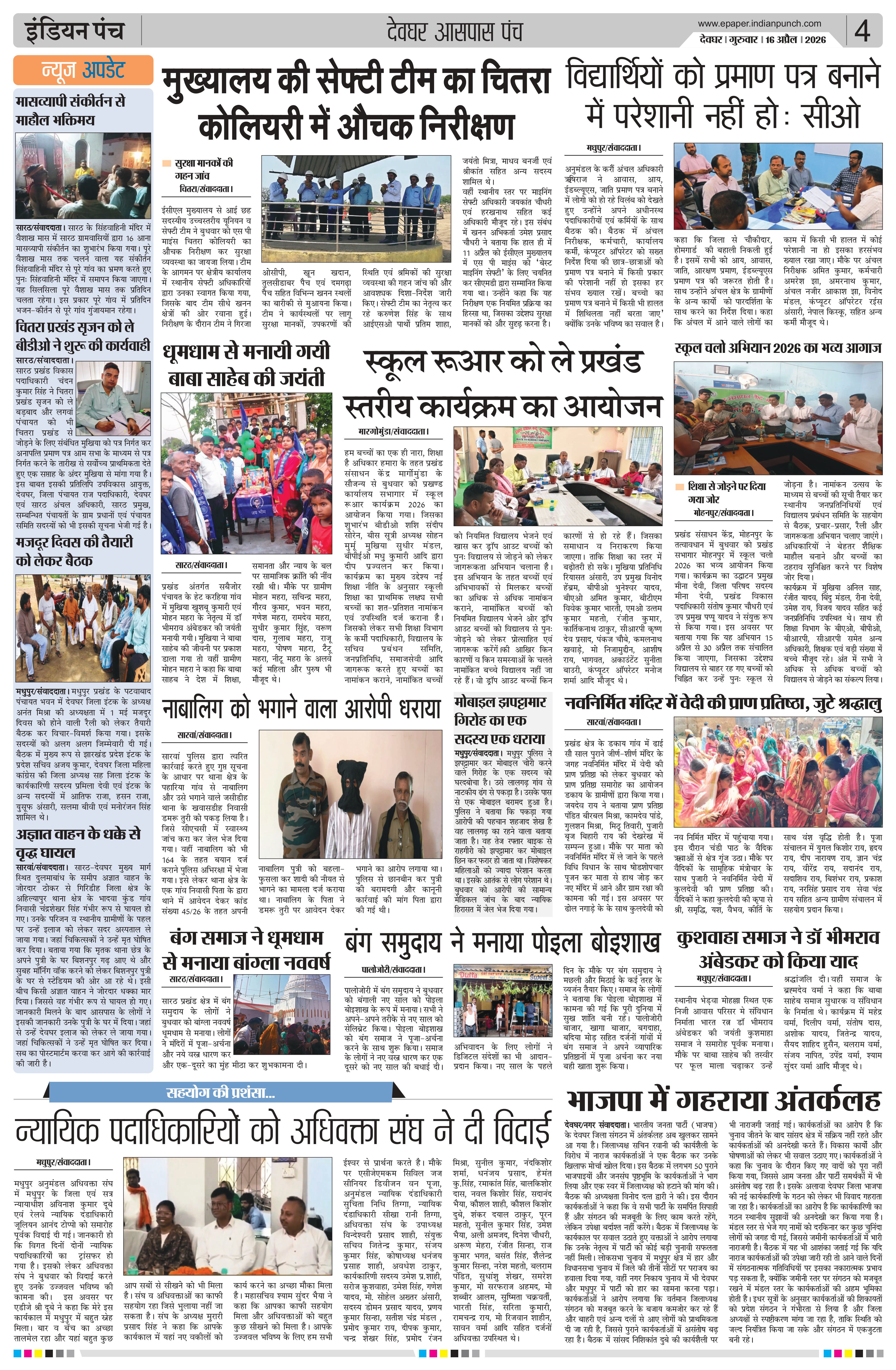 समाचार पत्र इंडियन पंच, 16 अप्रैल 2026 की मुख्य सुर्खियां