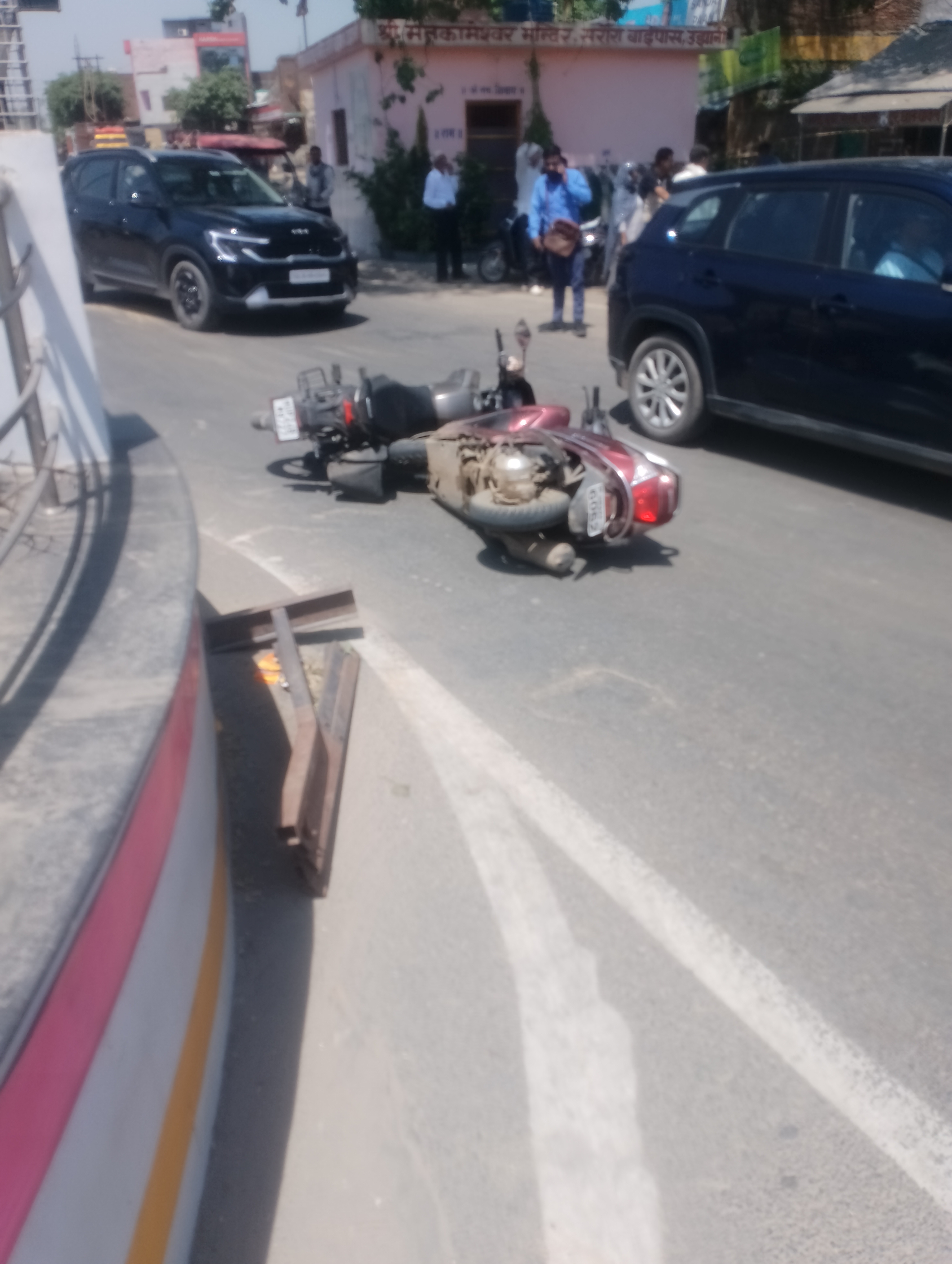 Galat disha se aane bale scooty ne takkar mari ganimat rahi ki kisi ko koi chot nhi aayi