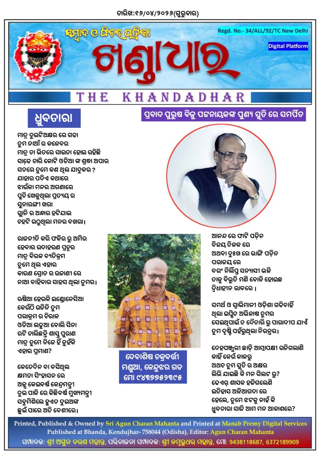 ଧ୍ରୁବତାରା - ଦେବାଶିଷ ଚକ୍ରବର୍ତ୍ତୀ ଙ୍କ ଦ୍ଵାରା ରଚିତ କବିତା।