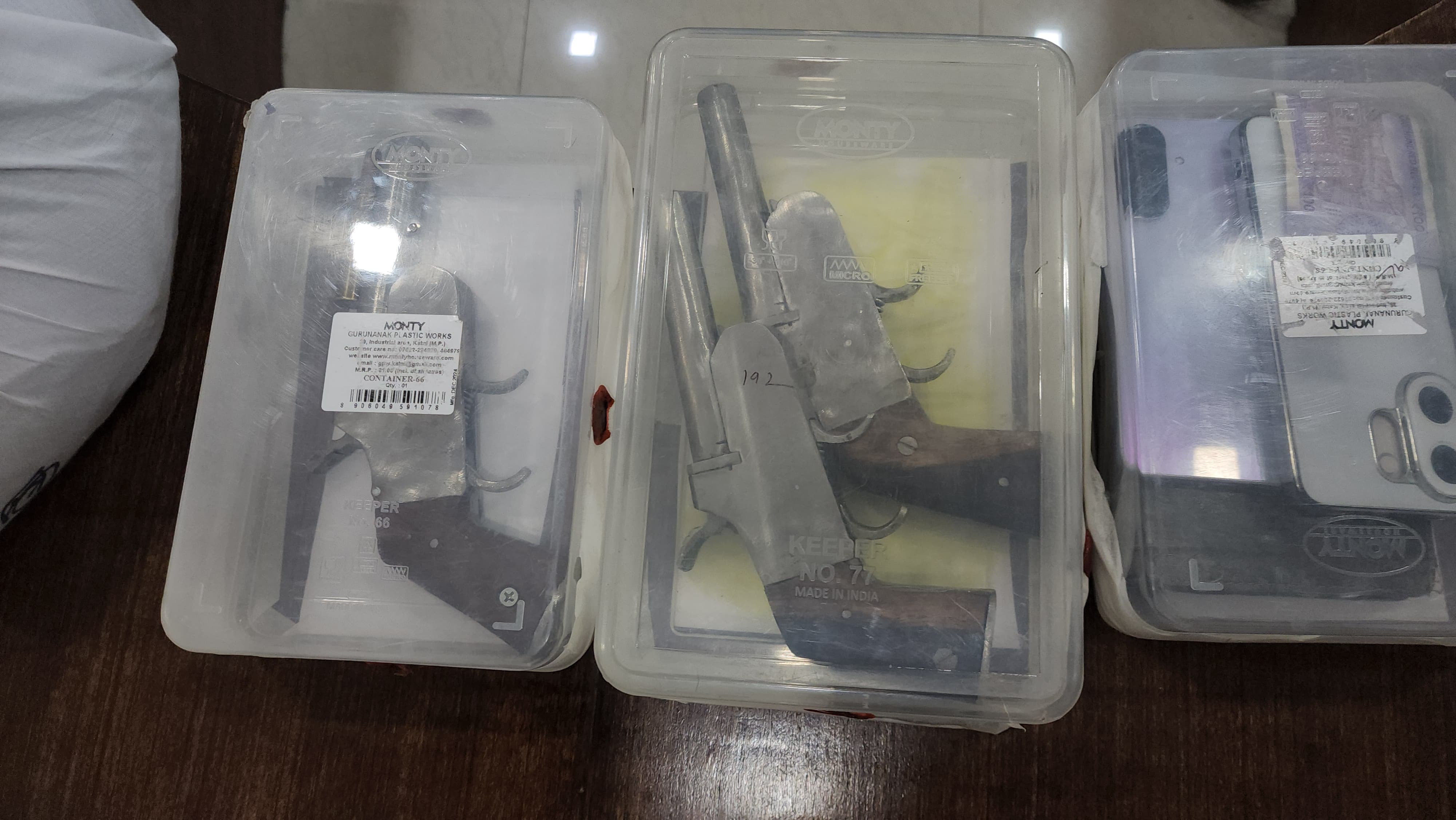 चेकिंग के दौरान कोतवाली बाजपुर क्षेत्रांतर्गत लेवडा नदी तिराहे के पास से पुलिस टीम ने 02 संदिग्ध व्यक्तियों को पकड़कर तलाशी ली, जिनके कब्जे से कुल 02.664 किलोग्राम गांजा, 03 अवैध तमंचा (315 बोर) व 02 जिन्दा कारतूस (315 बोर) बरामद हुए।