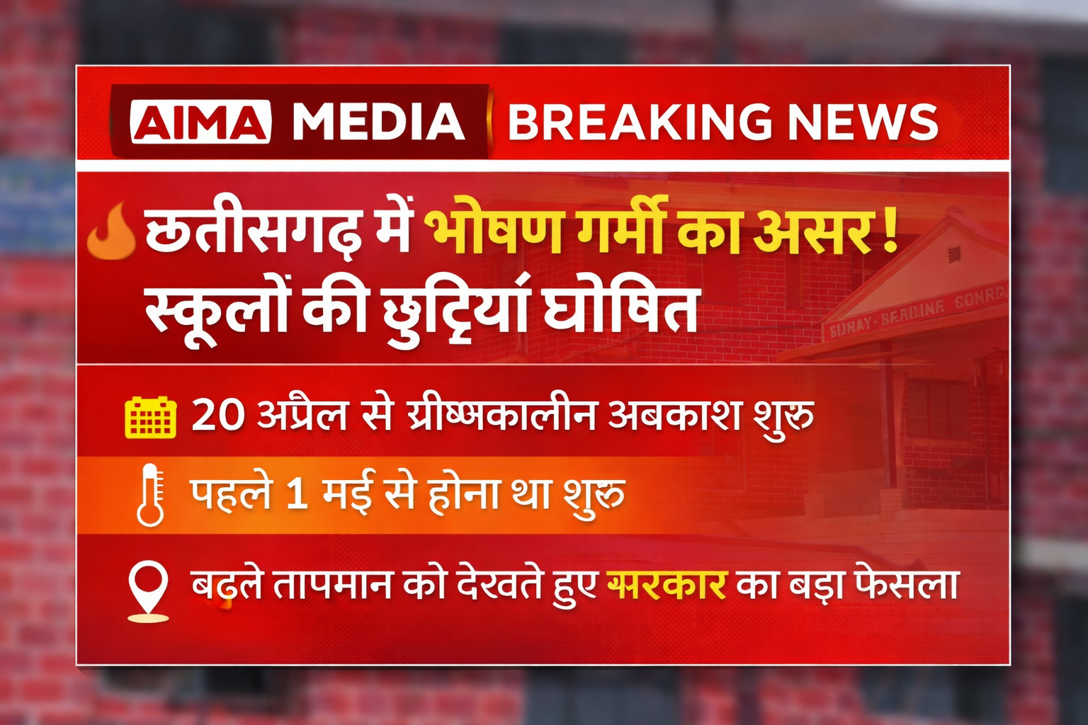 छत्तीसगढ़ में भीषण-गर्मी के चलते स्कूलों की छुट्टियां:20 अप्रैल से ग्रीष्मकालीन अवकाश, 1 मई से शुरू होना था;बढ़ते तापमान को देखते सरकार का फैसला