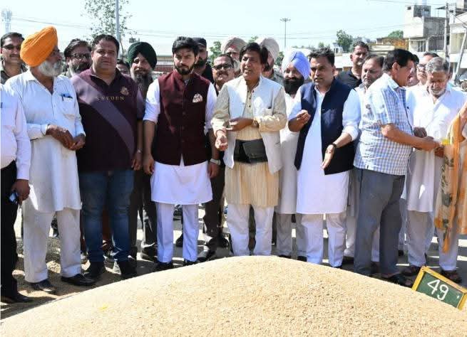 ਵਿਧਾਇਕ ਬ੍ਰਮ ਸ਼ੰਕਰ ਜਿੰਪਾ ਅਤੇ ਇਸ਼ਾਂਕ ਕੁਮਾਰ ਨੇ ਦਾਣਾ ਮੰਡੀ ‘ਚ ਸ਼ੁਰੂ ਕਰਵਾਈ ਕਣਕ ਦੀ ਖਰੀਦ