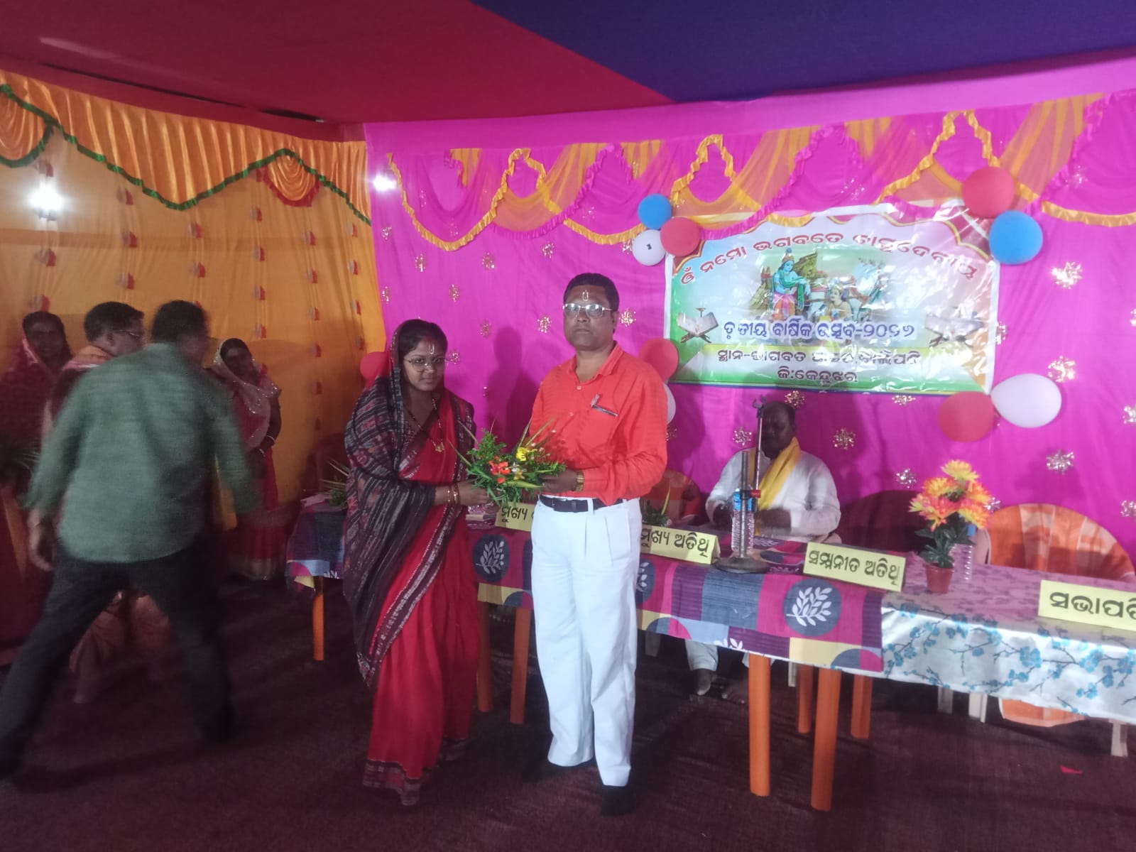 ​​ଏହି ଉତ୍ସବରେ ସମାଜସେବୀ ଶ୍ରୀଯୁକ୍ତ ମୋହନ ଚରଣ ନାଏକ ମୁଖ୍ୟ ଅତିଥି ଭାବେ ଯୋଗଦେଇ ସମାଜ ଗଠନରେ ଭାଗବତର ଭୂମିକା ଅତୁଳନୀୟ ବୋଲି ମତବ୍ୟକ୍ତ କରିଥିଲେ। ବିଶିଷ୍ଟ ପାଲାଗାୟକ ତଥା ପ୍ରବଚକ ଶ୍ରୀଯୁକ୍ତ ଭାବଗ୍ରାହୀ ମହାନ୍ତ ମୁଖ୍ୟବକ୍ତା ଭାବେ ଯୋଗଦେଇ ନିଜର ସୁଲଳିତ କଣ୍ଠରେ ଭାଗବତର ଗୂଢ଼ ତତ୍ତ୍ୱ ବିଷୟରେ ବୁଝାଇ ଶ୍ରୋତାମାନଙ୍କୁ ମନ୍ତ୍ରମୁଗ୍ଧ କରିଥିଲେ।