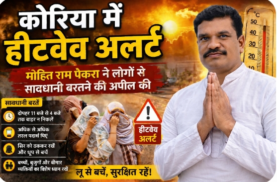 स्थिति की गंभीरता को देखते हुए मोहित राम पैकरा (जिला पंचायत अध्यक्ष, कोरिया) ने जिलेवासियों से विशेष सावधानी बरतने की अपील की है। उन्होंने कहा कि मौसम विभाग के अलर्ट को गंभीरता से लें और अनावश्यक रूप से धूप में बाहर निकलने से बचें।