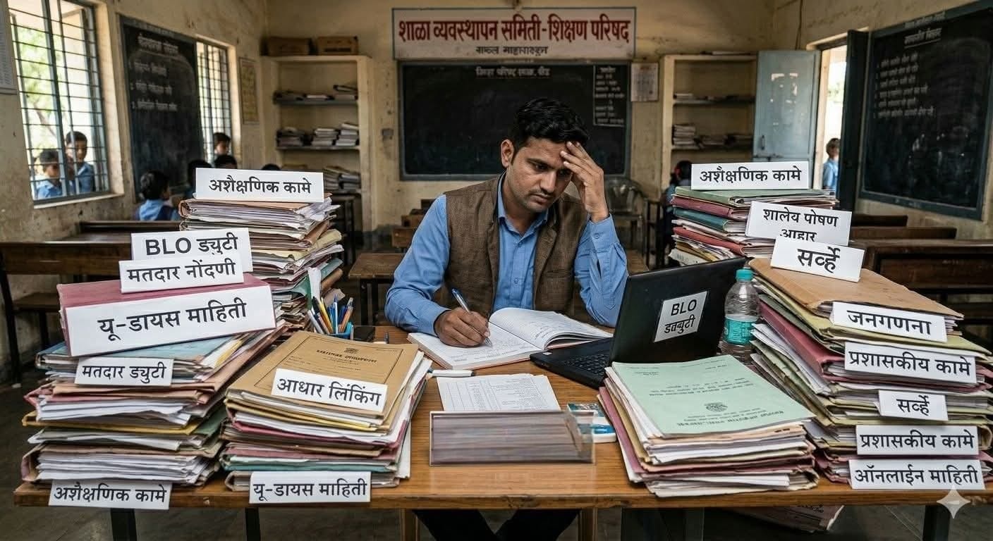 महाराष्ट्र राज्य शैक्षणिक प्रगतीच्या गप्पा मारत असताना, ग्रामीण भागातील शिक्षणाचा कणा असलेल्या जिल्हा परिषद शाळा मात्र एका वेगळ्याच संकटाचा सामना करत आहेत. हे संकट अभ्यासक्रमाचे नाही, तर शिक्षकांवर लादल्या गेलेल्या *अशैक्षणिक कामांच्या (Non-Academic Duties)* प्रचंड ओझ्याचे आहे.
