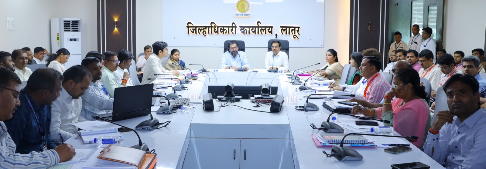 लातूर जिल्ह्यातील विविध विकास कामे व संभाव्य पाणी टंचाईबाबत पालकमंत्री नामदार शिवेन्द्रसिहराजे भोसले यांच्या अध्यक्षतेखाली जिल्हाधिकारी कार्यालयात आढावा बैठकीचे आयोजन करण्यात आले होते. सहकार मंत्री बाबासाहेब पाटील, आमदार संभाजी पाटील निलंगेकर, आमदार अभिमन्यू पवार यांची या बैठकीला दूरदृश्य प्रणालीद्वारे उपस्थिती होती. तसेच जिल्हा परिषदेच्या अध्यक्षा उषाताई पाटील तळेगावकर, महापौर जयश्री सोनकांबळे, जिल्हाधिकारी डॉ. भारत बास्टेवाड, जिल्हा परिषदेचे मुख्य कार्यकारी अधिकारी राहुल कुमार मीना, लातूर शहर महानगरपालिका आयुक्त मानसी मीना, निवासी उपजिल्हाधिकारी केशव नेटके, लातूर लाभक्षेत्र विकास प्राधिकरणच्या अधीक्षक अभियंता तथा प्रशासक रुपाली ठोंबरे, कार्यकारी अभियंता अमरसिंह पाटील यांच्यासह संबंधित विभागांचे अधिकारी यावेळी उपस्थित होते.