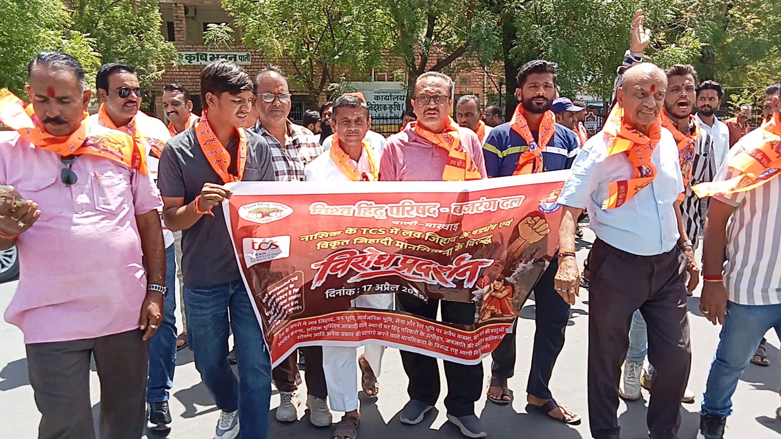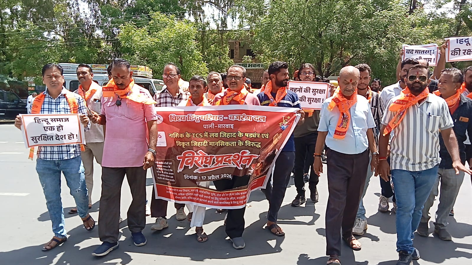 पाली शुक्रवार 17 अप्रेल। देश भर में बढ़ रही सुनियोजित जेहाद की घटनाओं को विकृत मानसिकता का परिचायक बताते हुए हिन्दू संगठनों द्वारा इसके खिलाफ जनजागरण करने और आम जन को सावधान करने के लिए आज विश्व हिन्दू परिषद और बजरंग दल द्वारा जिला कलेक्टर पर जोरदार विरोध प्रदर्शन करके राष्ट्रपति के नाम ज्ञापन दिया गया।