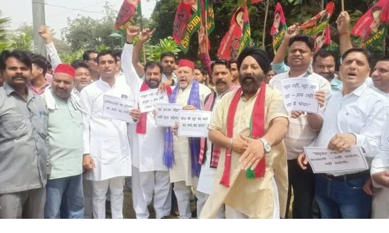 प्राइवेट स्कूलों की बढ़ती फीस के खिलाफ सपा का प्रदर्शन