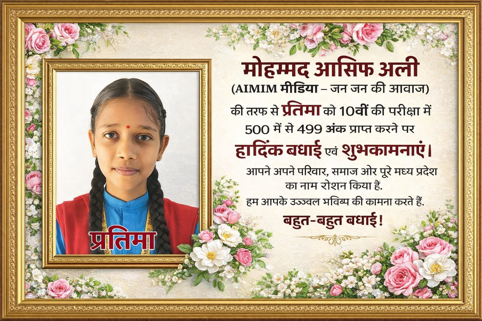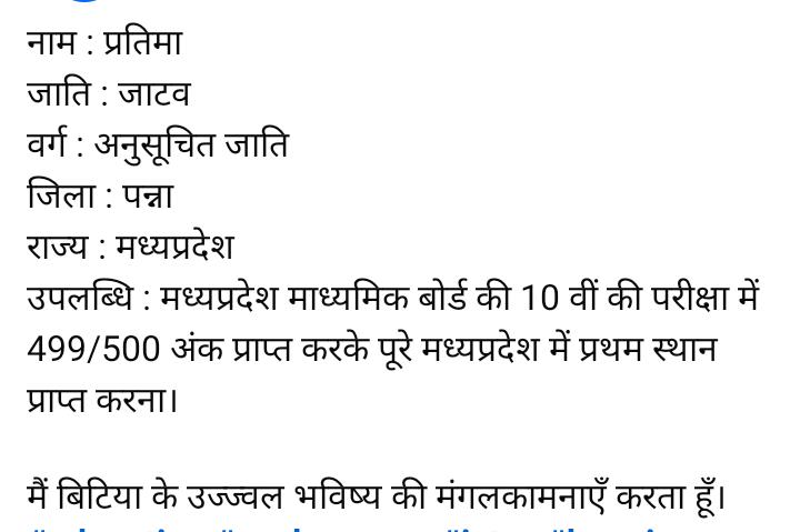 M P news. 10th class result me pratima ne jo ki madhyapradesh se 500/499 ank prapt kiye congratulations 🎉