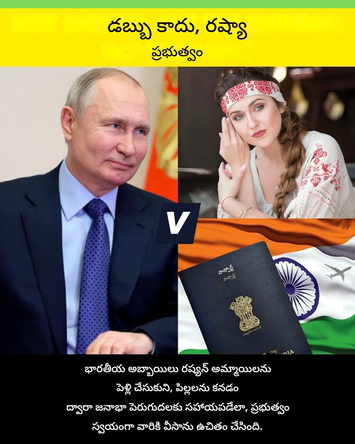 వివాహాల ద్వారా జనాభా పెరుగుదలను ప్రోత్సహించడానికి భారతీయ యువకులకు వీసా రహిత ప్రవేశం కల్పిస్తున్నామని రష్యా ఇటీవల ఆన్‌లైన్‌లో చేసిన వాదనలు దృష్టిని ఆకర్షించాయి—కానీ ఇలాంటి కథనాలను జాగ్రత్తగా అర్థం చేసుకోవాలి. 🇮🇳🇷🇺
