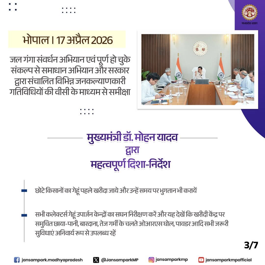 मुख्यमंत्री डॉ. मोहन यादव द्वारा जल गंगा संवर्धन अभियान एवं पूर्ण हो चुके संकल्प से समाधान अभियान और सरकार द्वारा संचालित विभिन्न जनकल्याणकारी गतिविधियों की वीसी के माध्यम से समीक्षा