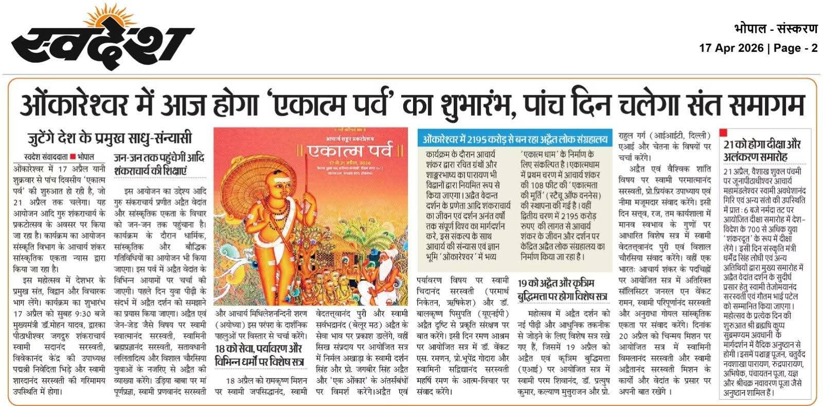 ओंकारेश्वर में आज होगा 'एकात्म पर्व' का शुभारंभ