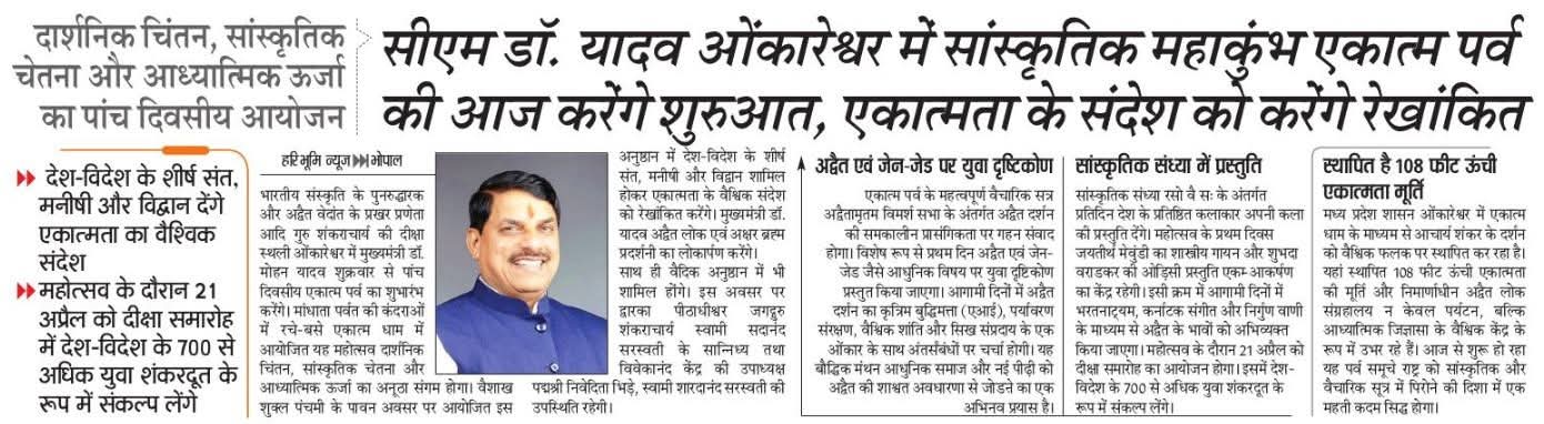 Dr Mohan Yadav Ekatma Dham CM Madhya Pradesh Department of Culture, Madhya Pradesh Haribhoomi