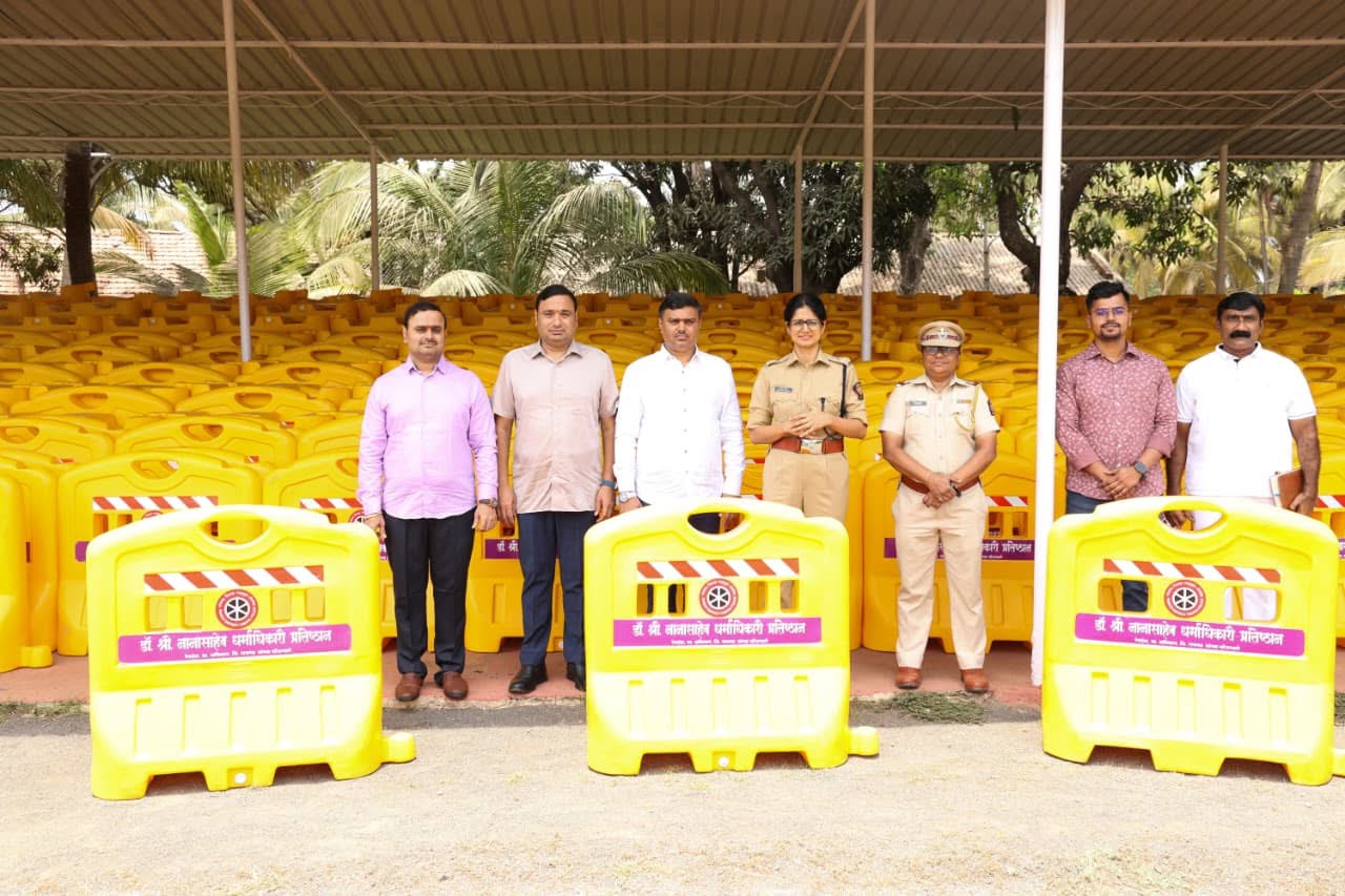 डॉ. नानासाहेब धर्माधिकारी प्रतिष्ठानकडून रायगड पोलिसांना ६१५ बॅरिकेड्स आणि १६ ब्रेथ ॲनालायझर सुपूर्द