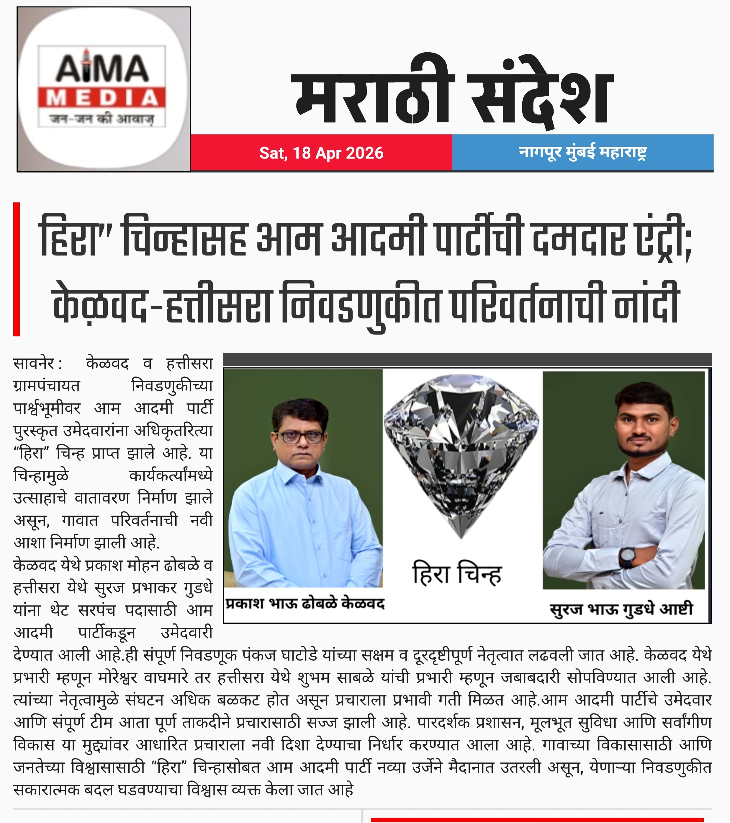 हिरा” चिन्हासह आम आदमी पार्टीची दमदार एंट्री; केळवद-हत्तीसरा निवडणुकीत परिवर्तनाची नांदी*